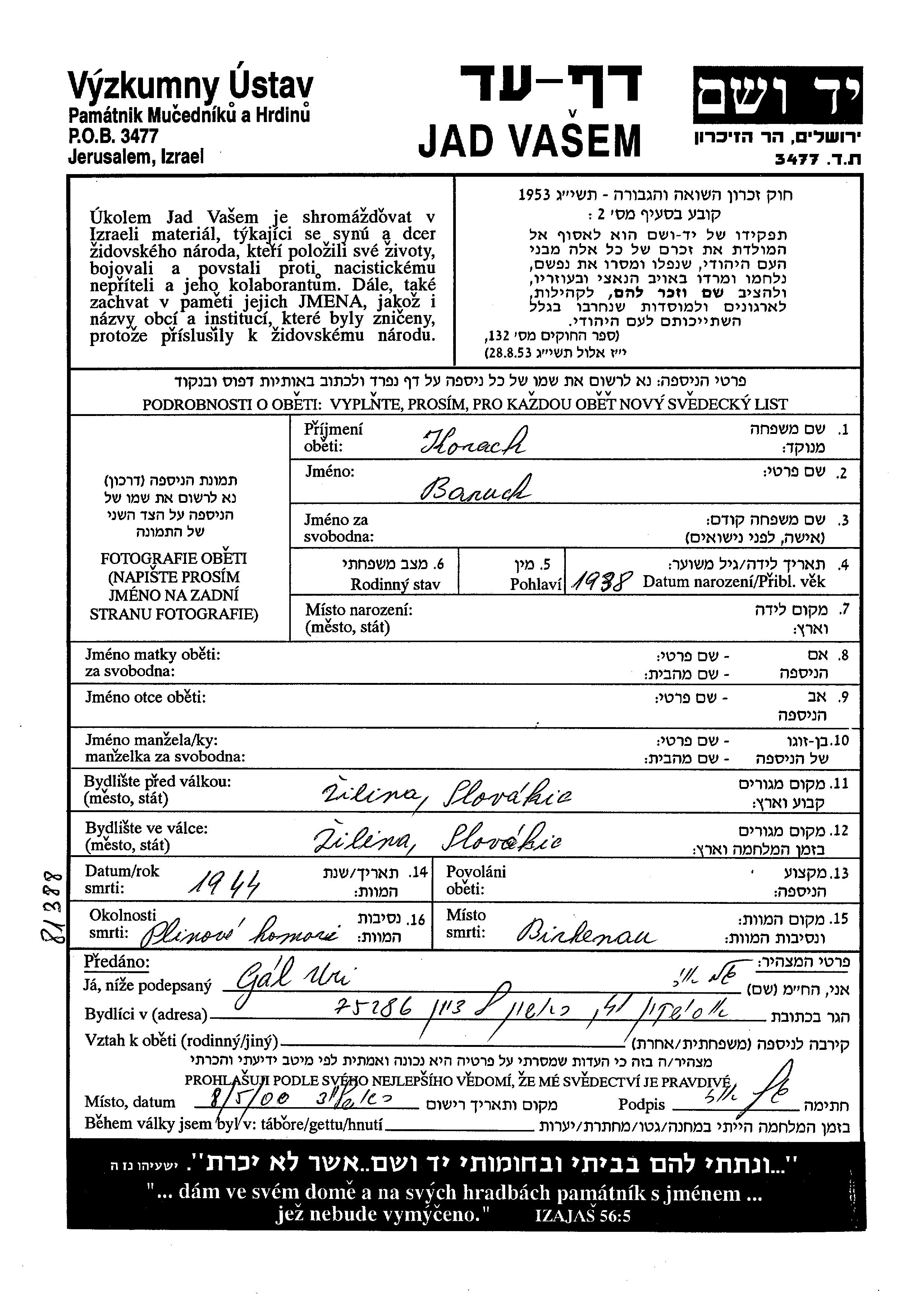 Baruch wurde in der Schoah ermordet. Todesort: Birkenau, Polen im Jahr 1944.