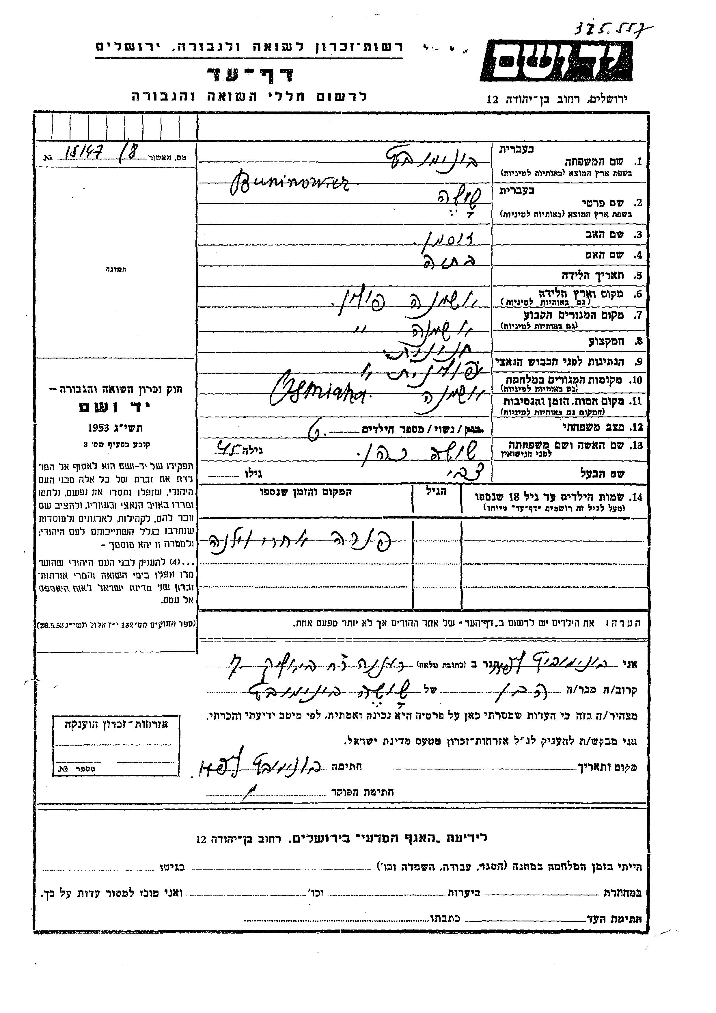 Shosha Bunimowicz Binimovitz, geb. Kohen wurde in Oszmiana, Polen geboren. Sie war die Tochter von Zusman und Batia. Sie war Besitzer/-in eines lebensmittelgeschäfts und mit Tzvi Verheiratet. Vor dem Zweiten Weltkrieg lebte sie in Oszmiana, Polen. Während des Krieges war sie in Oszmiana, Polen.