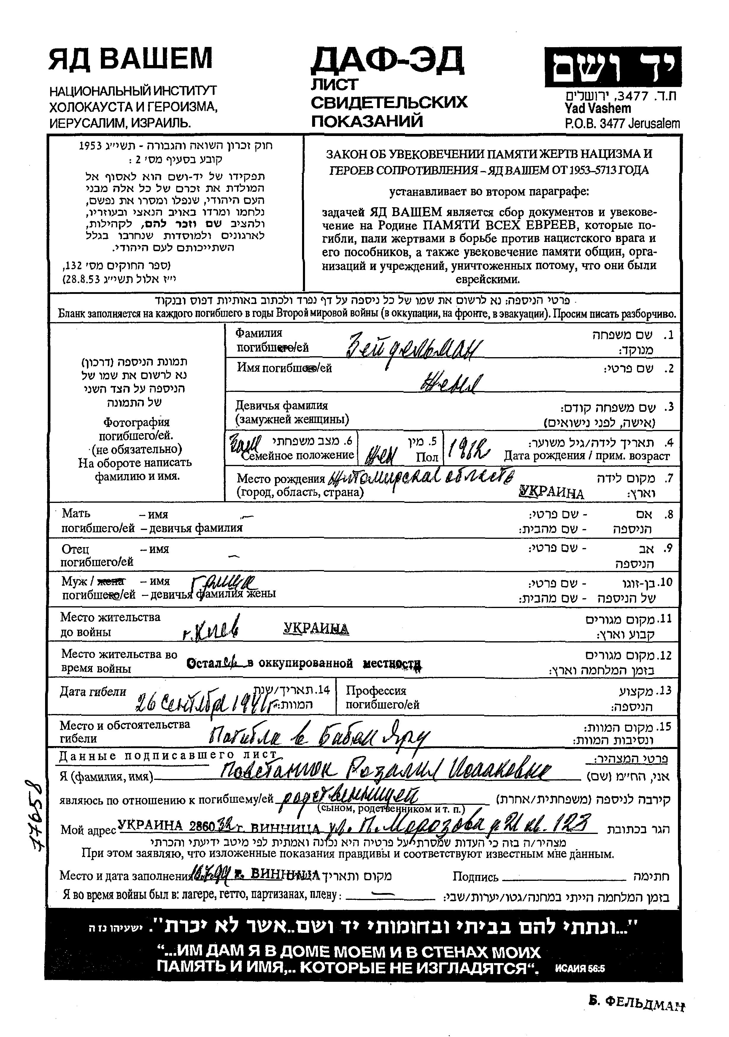 Zhenya wurde in der Schoah ermordet. Todesort: Babi Yar, Ukraine (UdSSR) im Jahr 1941.