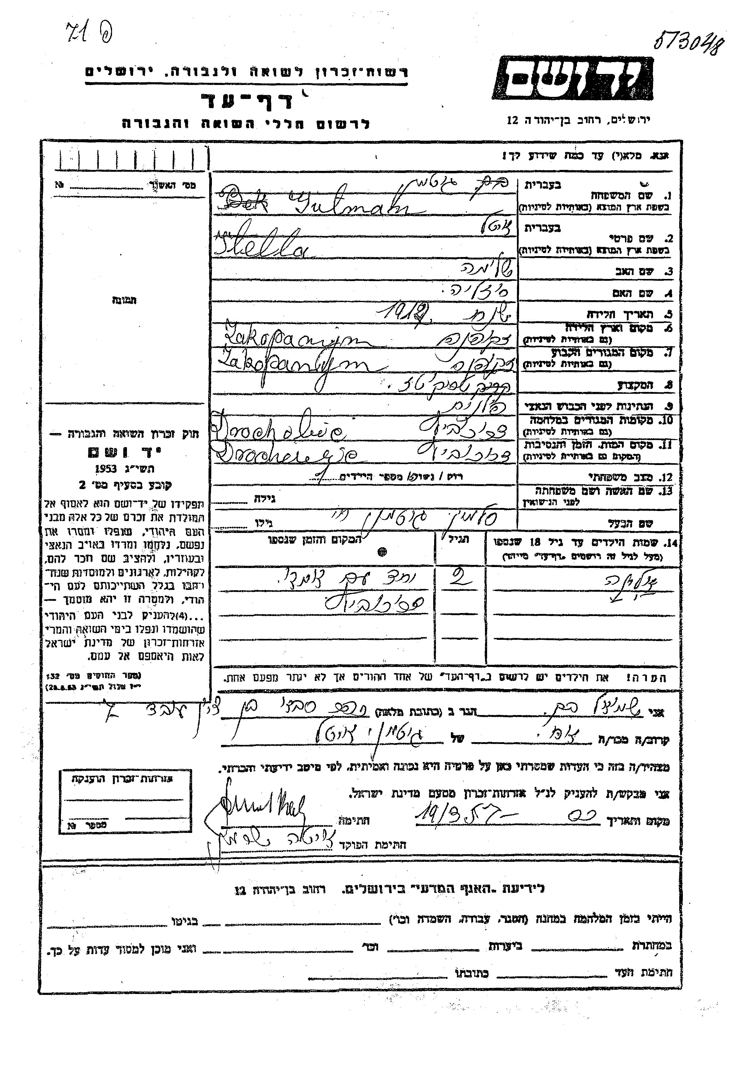 Itella wurde in der Schoah ermordet. Todesort: Drohobycz, Polen.