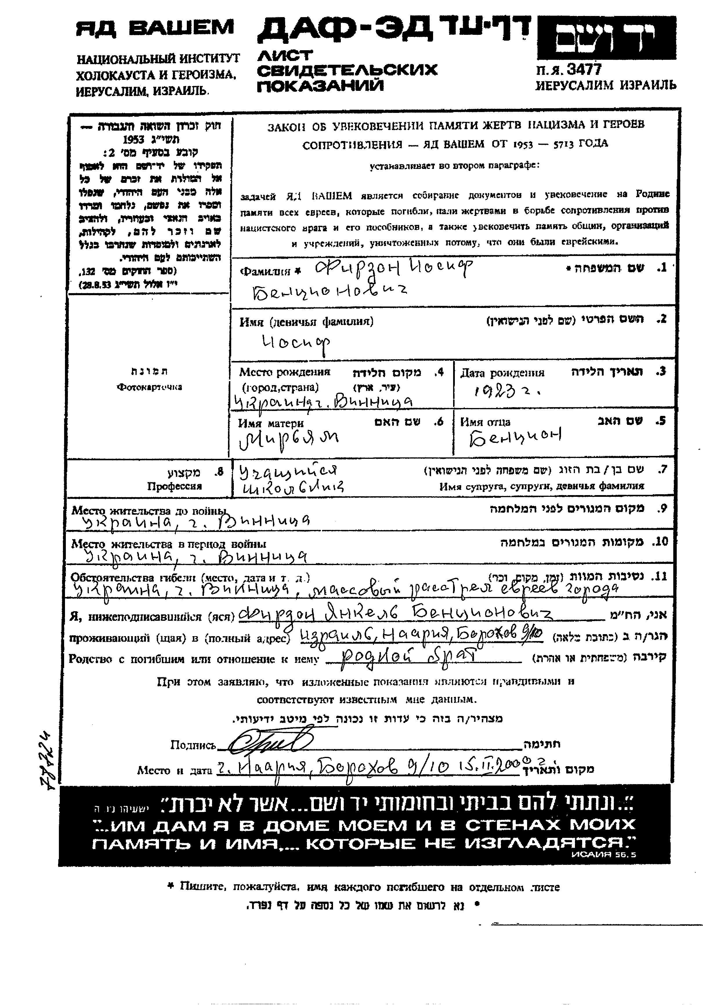 Iosif wurde in der Schoah ermordet. Todesort: Vinnitsa, Ukraine (UdSSR).