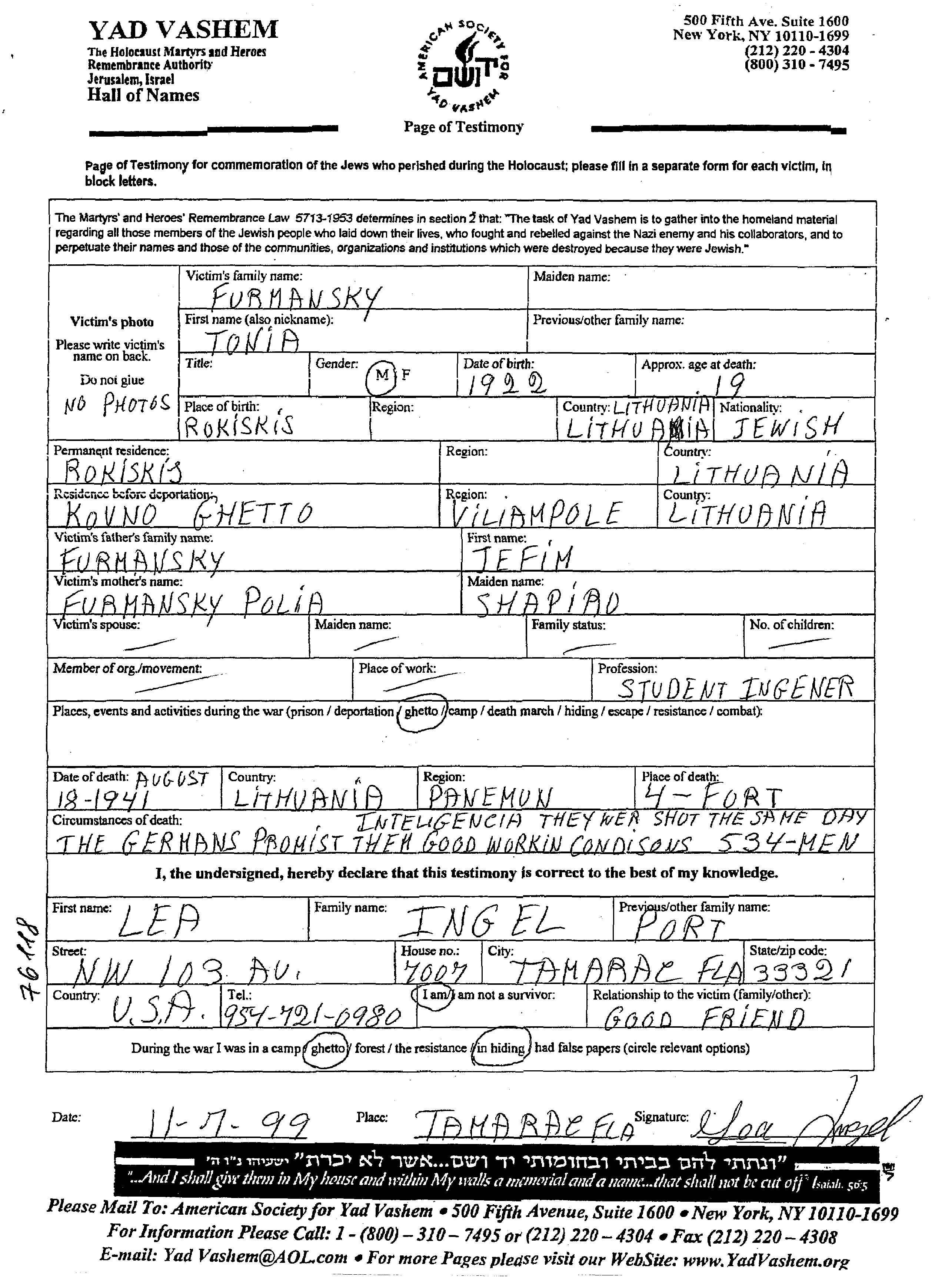Juden wurden in der Schoah auf verschiedenste Weisen ermordet, unter anderem: Vergasen, Erschiessen, lebendig verbrannt werden, lebendig begraben werden, Tod durch Erschöpfung durch Zwangsarbeit, Epidemien, mangels jeder hygienischer Bedingung oder dem Fehlen medizinischer Versorgung. Manche Juden nahmen sich das Leben, um der Festnahme und weiterer Verfolgung zu entgehen oder ihr hoffnungsloses, nicht nachlassendes Leiden zu beenden.