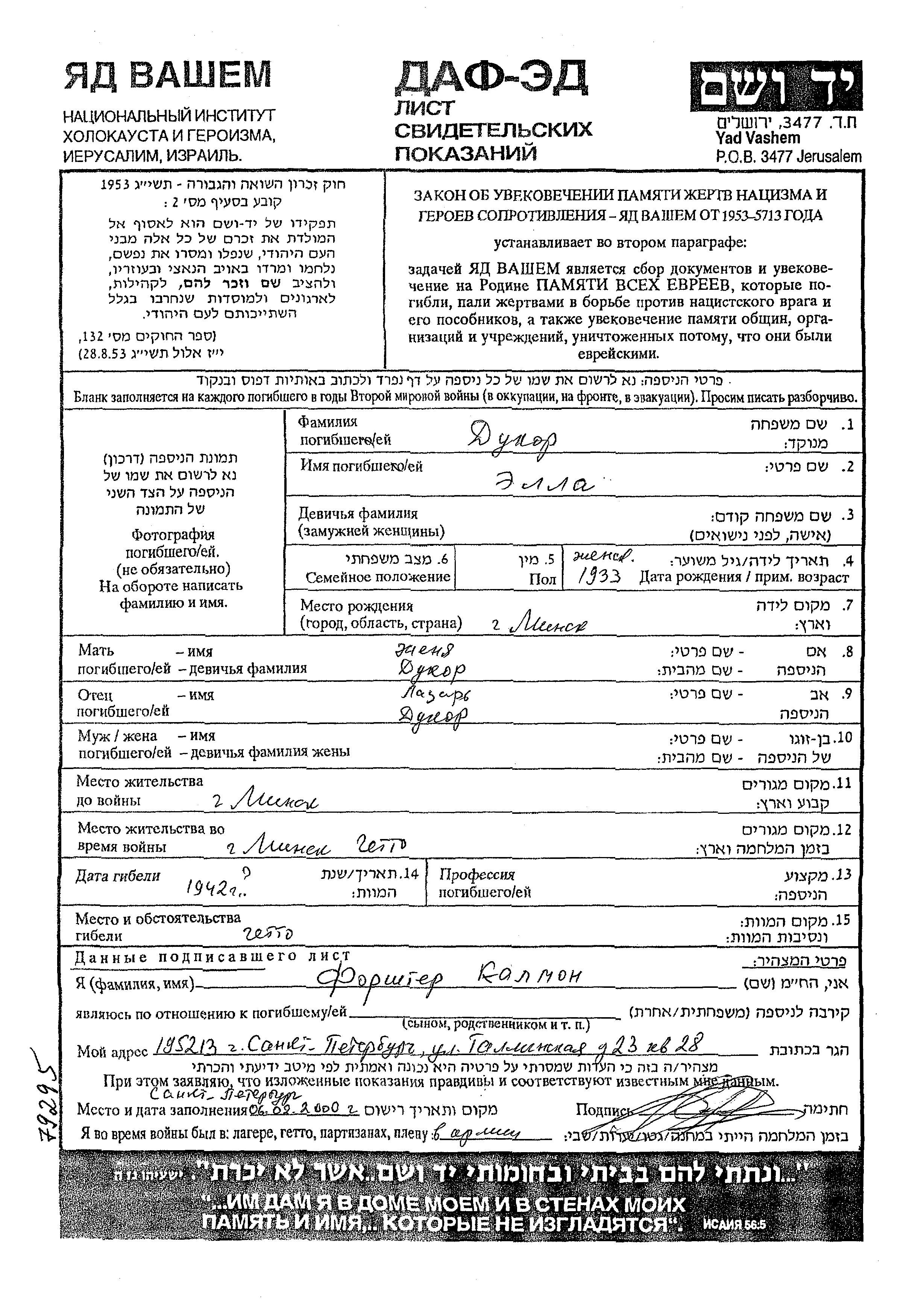 Ella wurde in der Schoah ermordet. Todesort: Minsk, Weißrussland (UdSSR) im Jahr 1942.