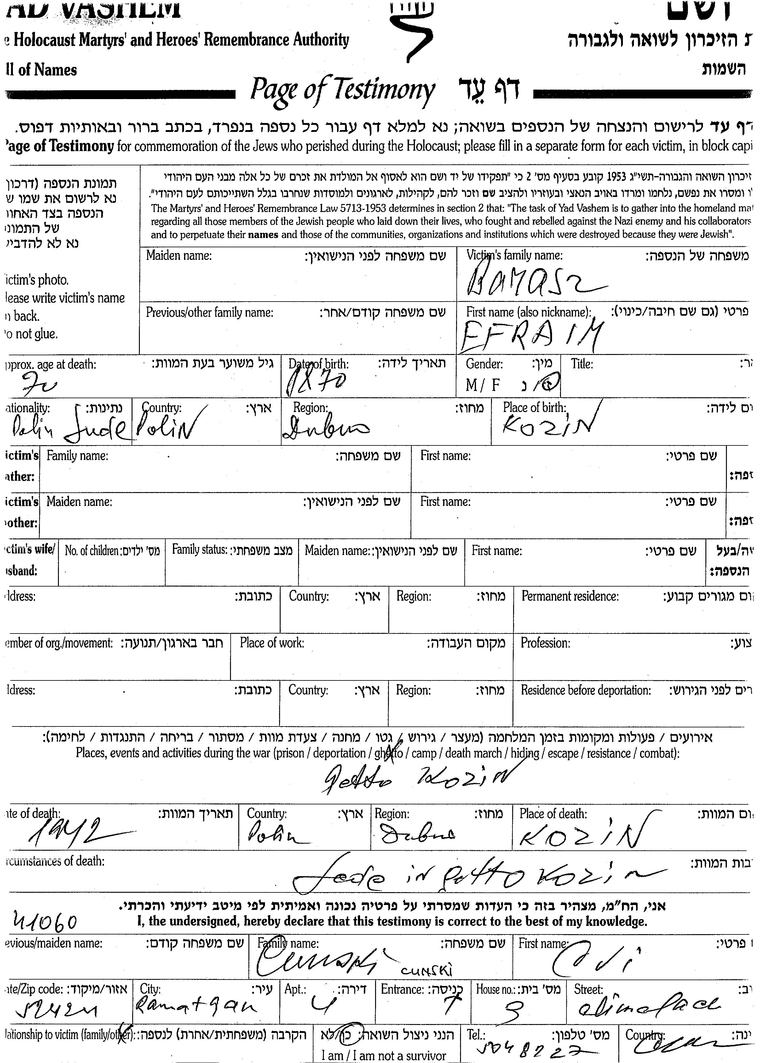 Stadt/Ortschaft oder Lager/Ghetto oder Bezirk/Region oder Land