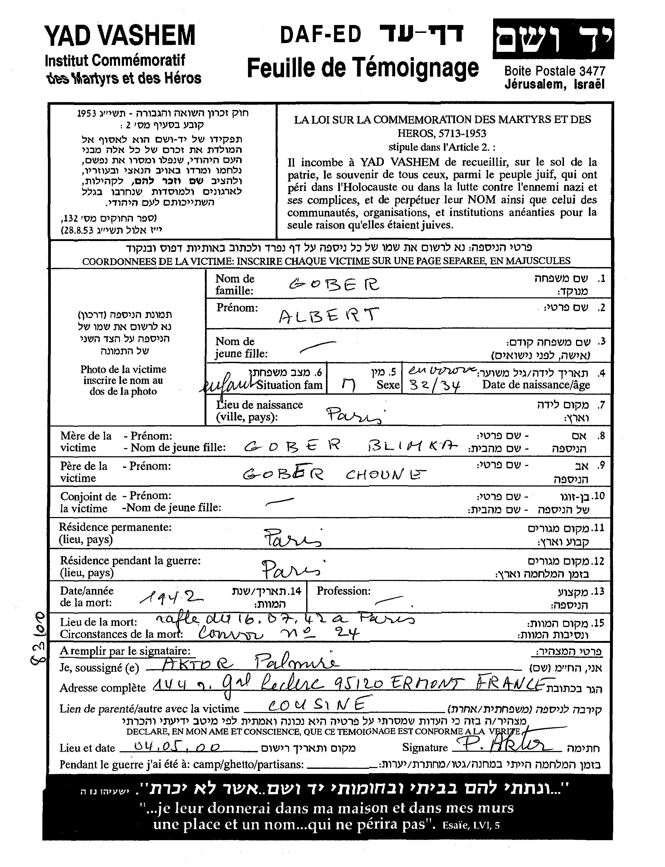 Albert Gober wurde in Paris, Frankreich geboren. Er war der Sohn von Choune und Blimka. Er war Kind. Vor dem Zweiten Weltkrieg lebte er in Paris, Frankreich. Während des Krieges war er in Paris, Frankreich.