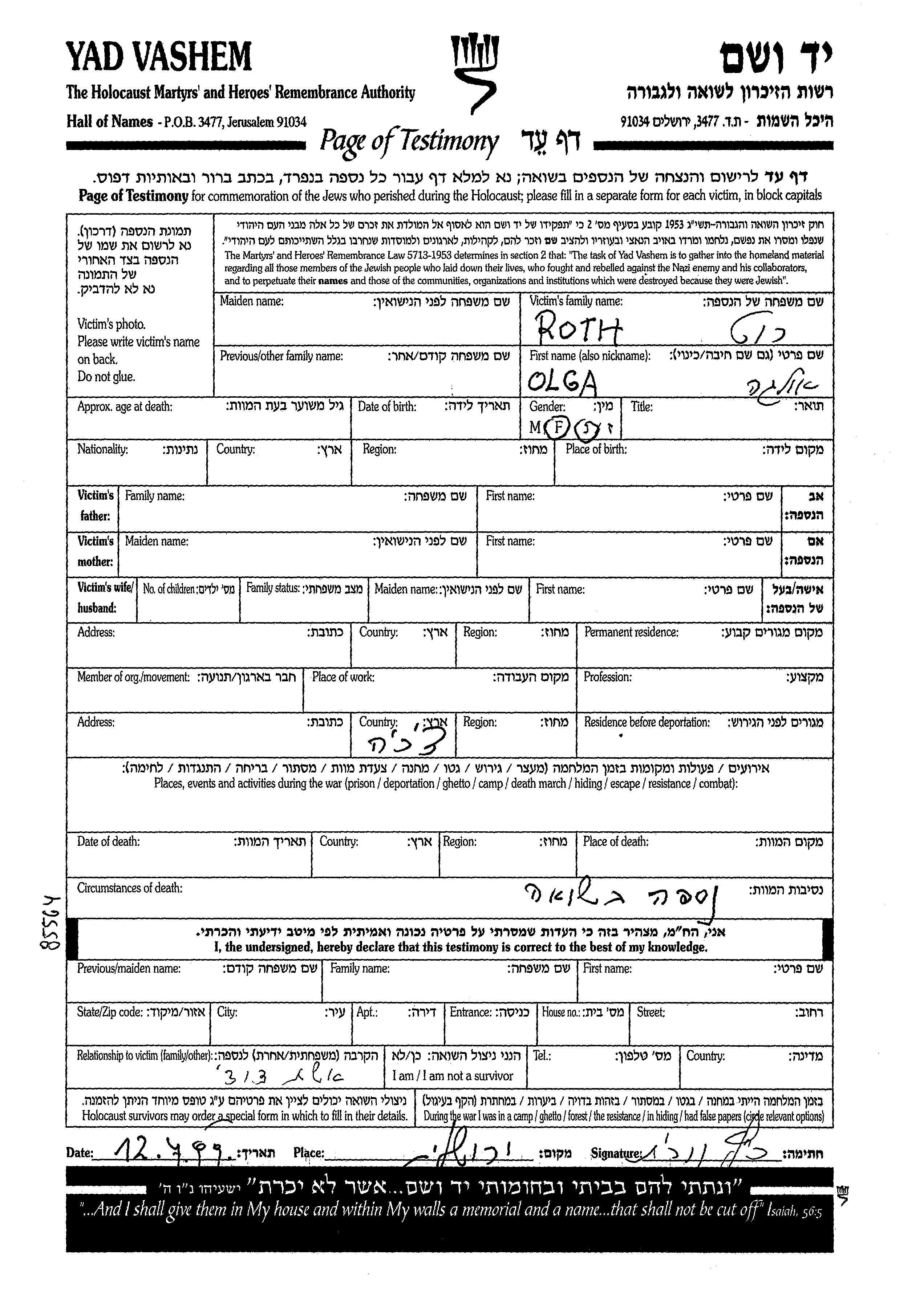 Olga wurde in der Schoah ermordet. Todesort: Tschechoslowakei.