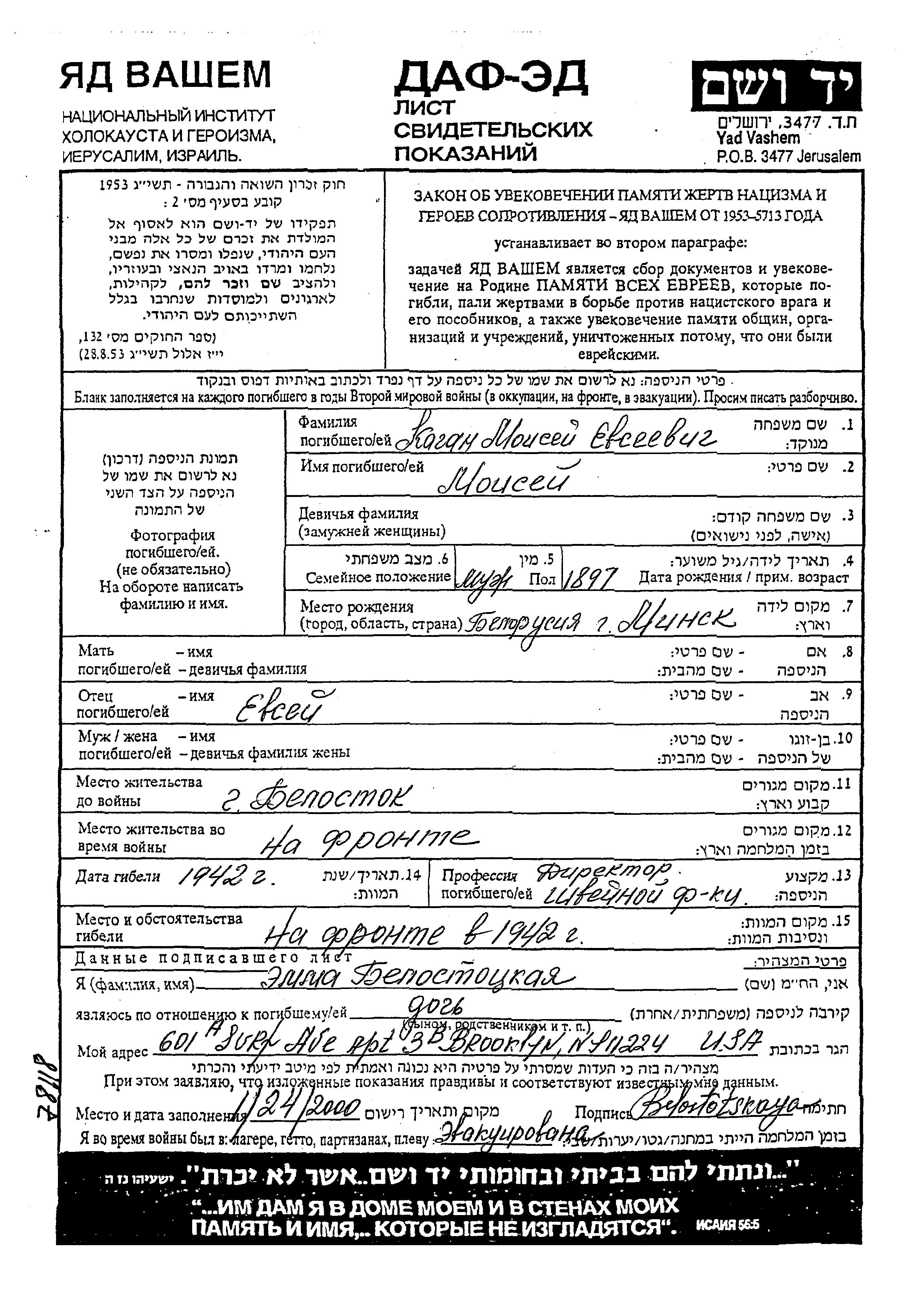 Moisei im Militärdienst umgekommen. Todesort: unbekannt im Jahr 1942.