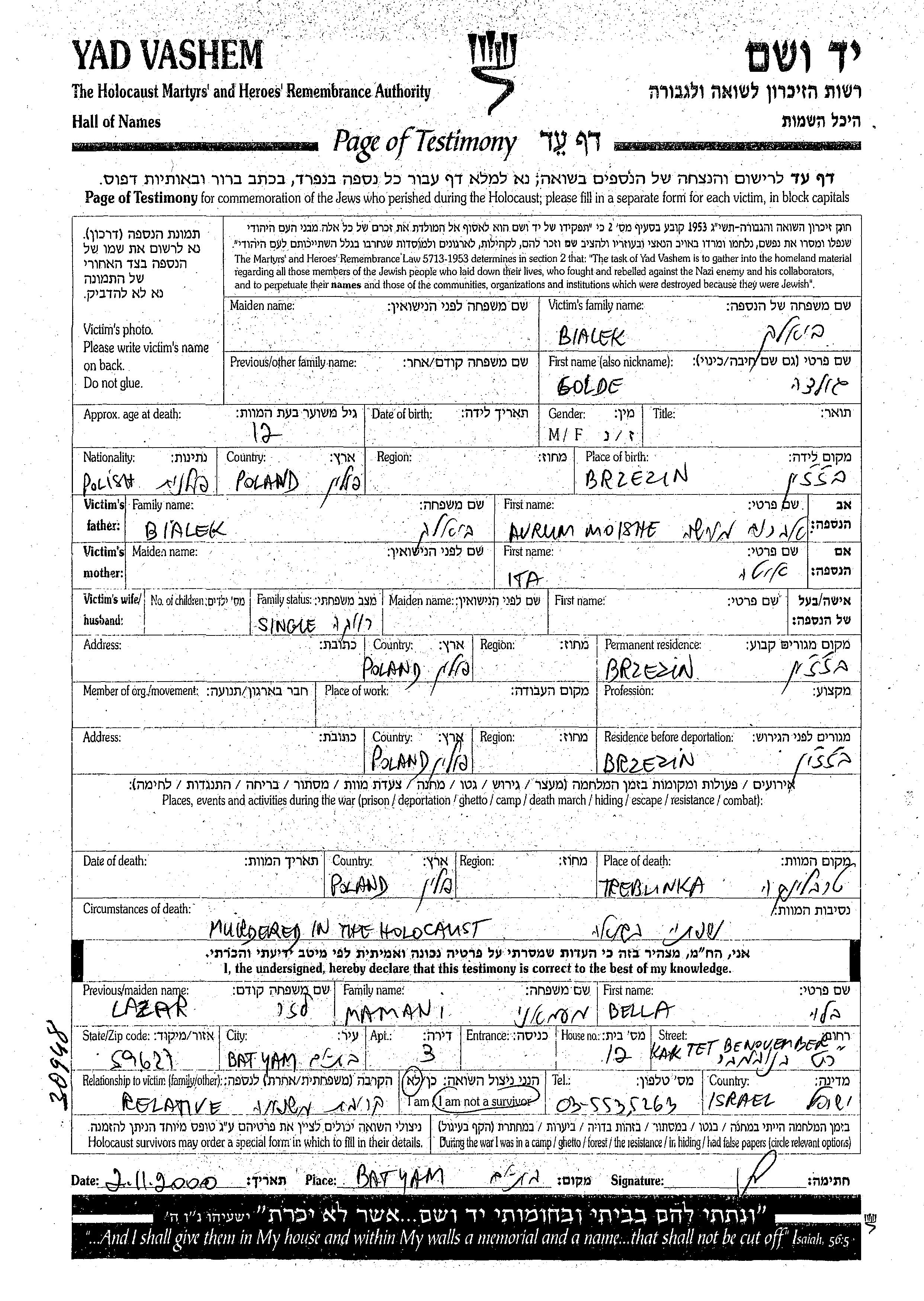Suche nach einem Todesjahr im Zeitraum der Holocaust: 1933 bis 1945. Bitte wählen Sie 'Exakt' im Auswahlmenü, um nur nach einem einzelnen Jahr zu suchen, alternativ können Sie die flexibleren Optionen '+/- 2 Jahre' oder '+/- 5 Jahre' wählen.