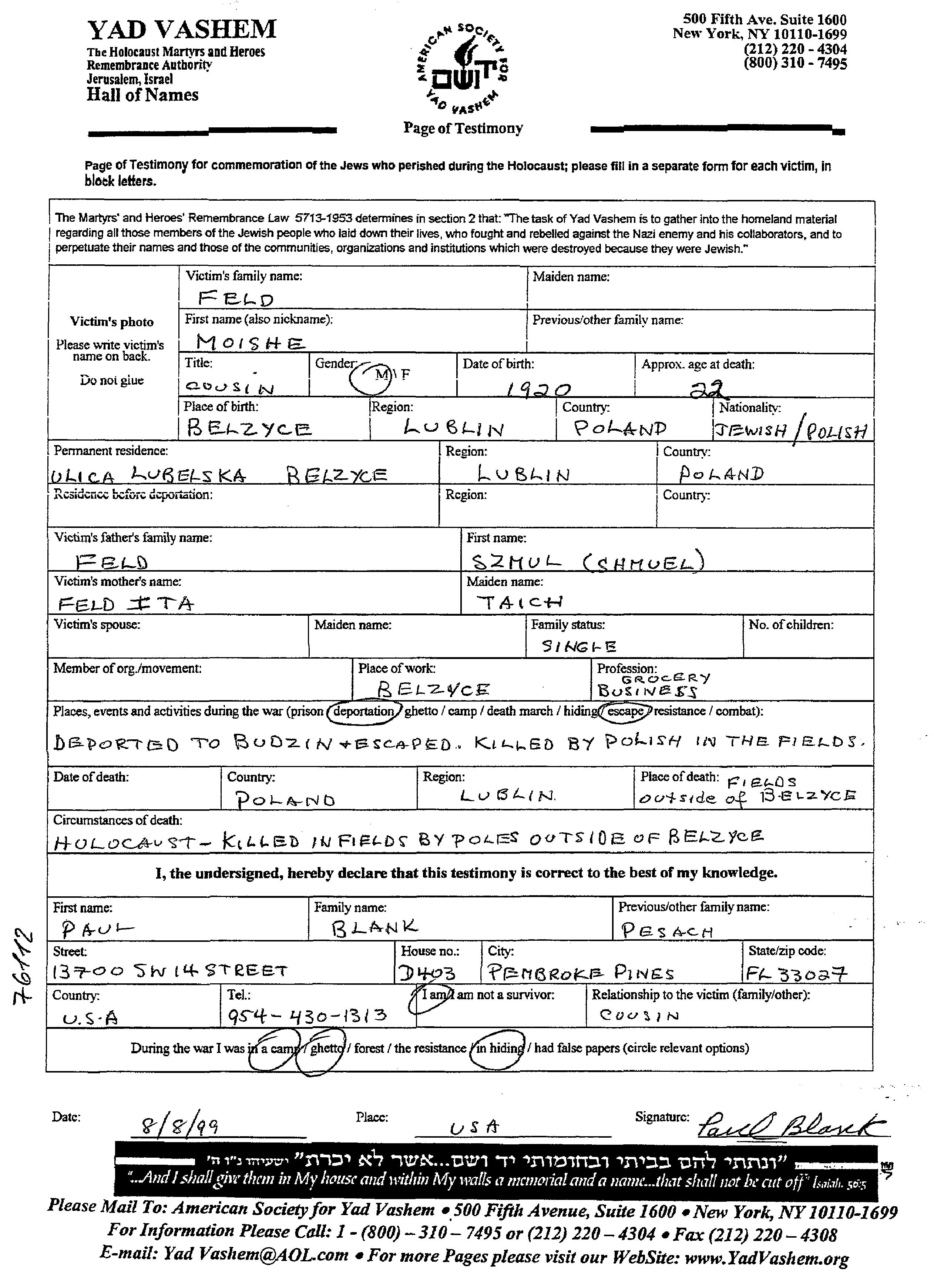 Juden wurden in der Schoah auf verschiedenste Weisen ermordet, unter anderem: Vergasen, Erschiessen, lebendig verbrannt werden, lebendig begraben werden, Tod durch Erschöpfung durch Zwangsarbeit, Epidemien, mangels jeder hygienischer Bedingung oder dem Fehlen medizinischer Versorgung. Manche Juden nahmen sich das Leben, um der Festnahme und weiterer Verfolgung zu entgehen oder ihr hoffnungsloses, nicht nachlassendes Leiden zu beenden.