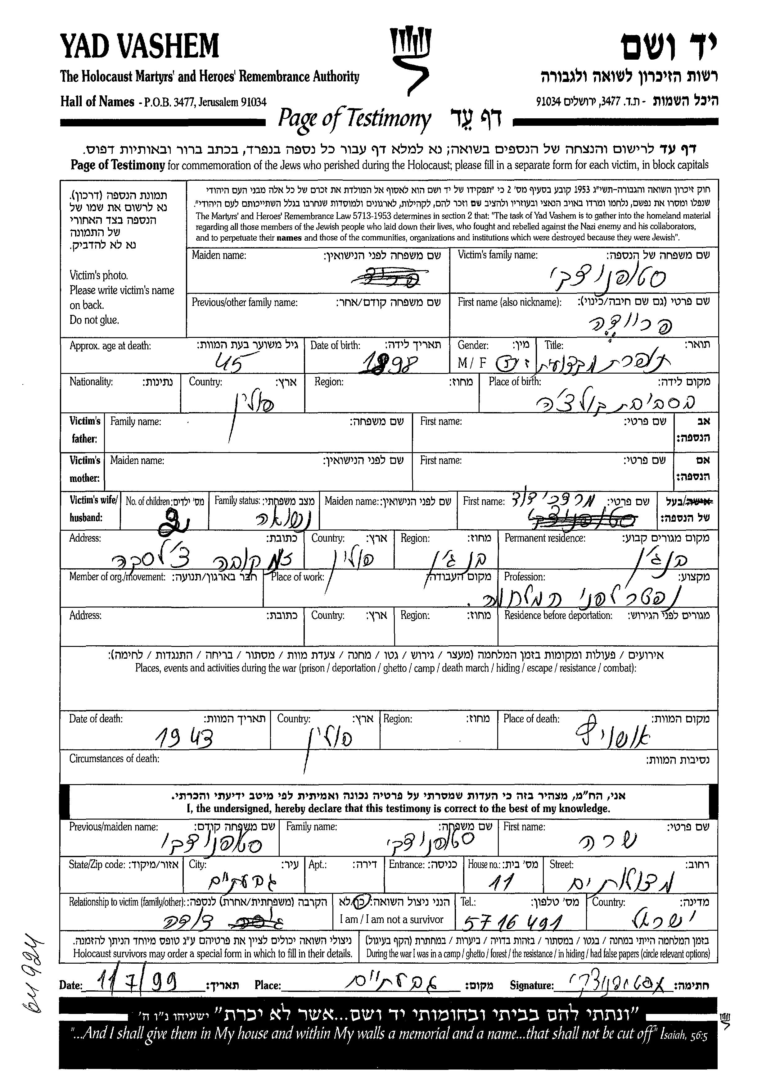 Freida wurde in der Schoah ermordet. Todesort: Auschwitz, Polen im Jahr 1943.