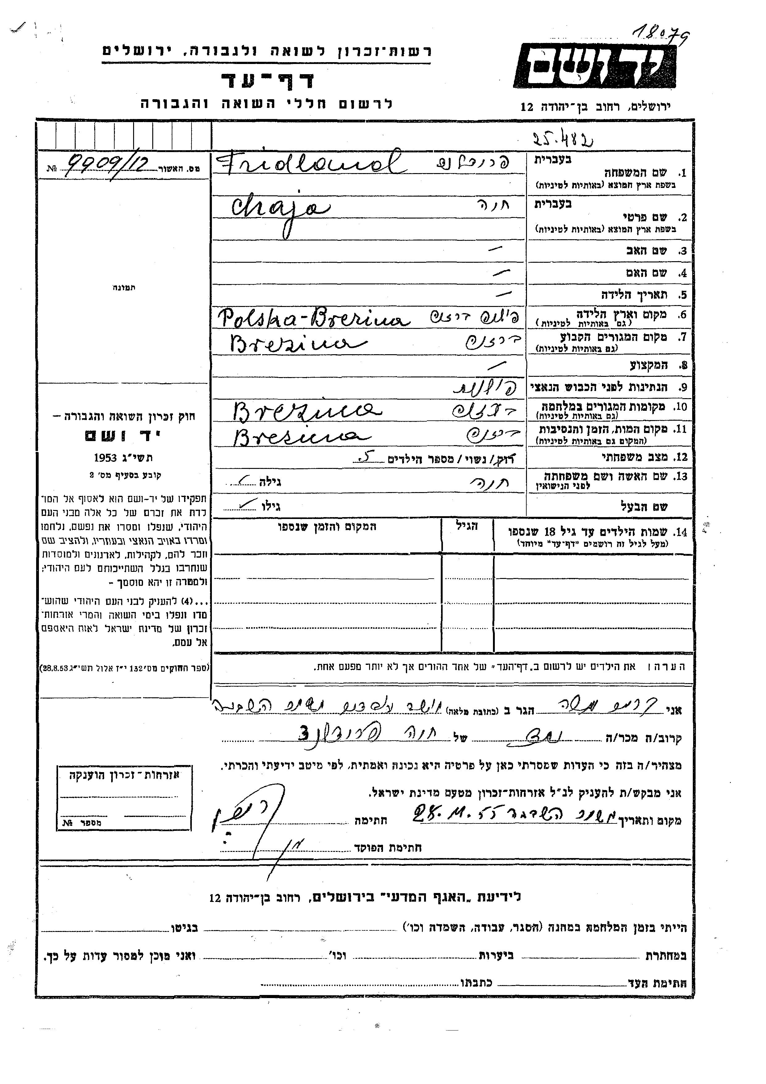 Chaja wurde in der Schoah ermordet. Todesort: Brezina.