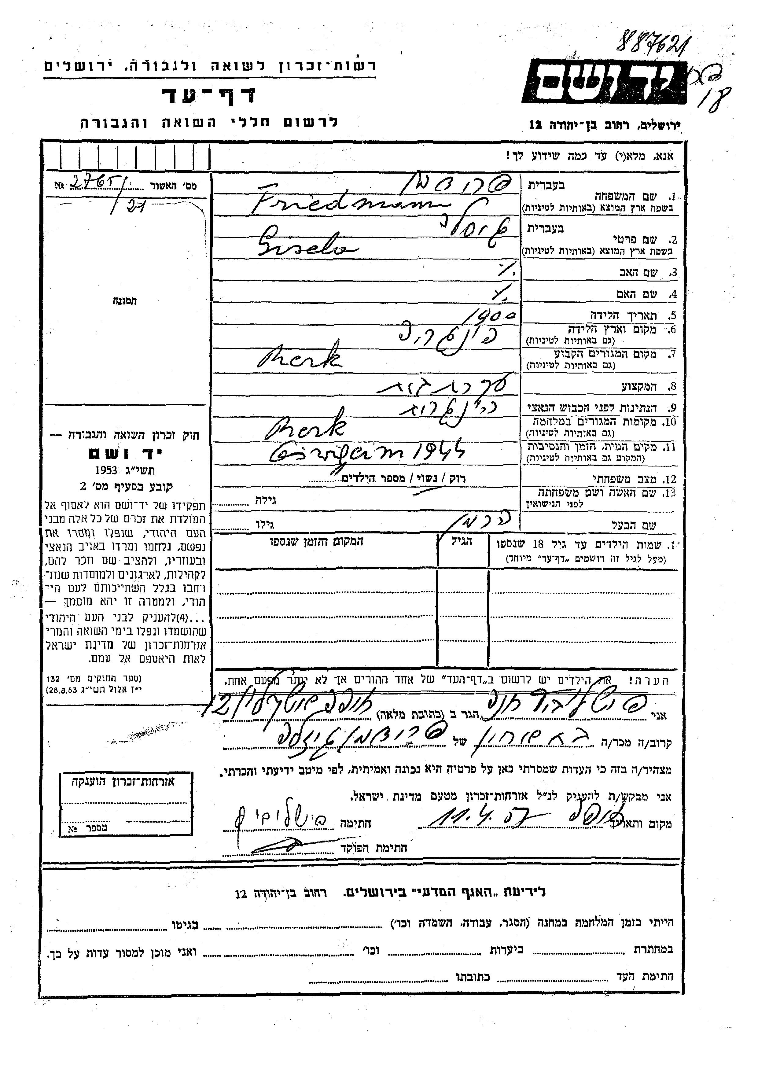 Gisela Friedman wurde im Jahr 1900 in Ungarn geboren. Sie war Hausfrau und mit Herman Verheiratet. Vor dem Zweiten Weltkrieg lebte sie in Merk, Ungarn. Während des Krieges war sie in Merk, Ungarn.