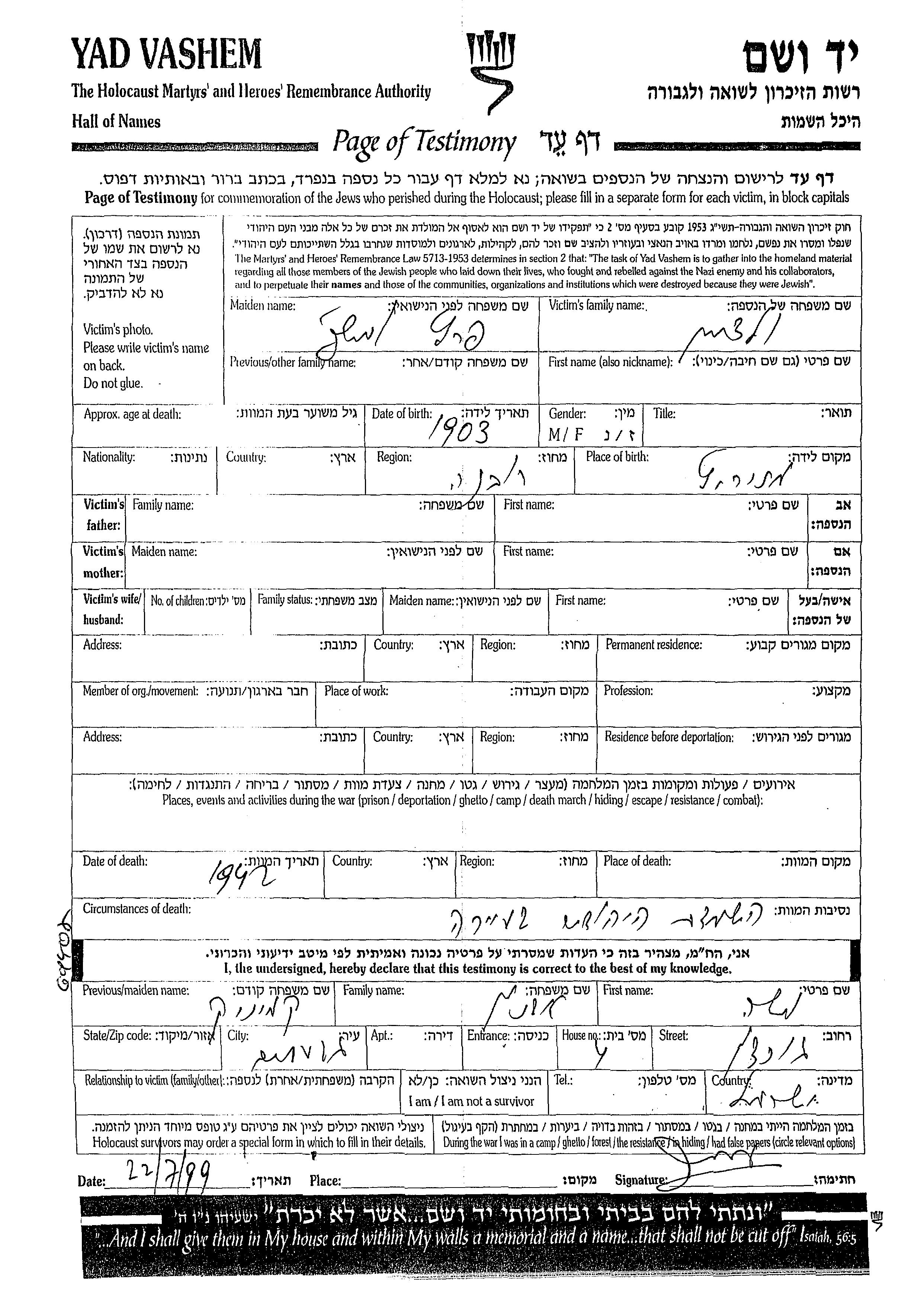 Peretz wurde in der Schoah ermordet. Todesort: unbekannt im Jahr 1942.