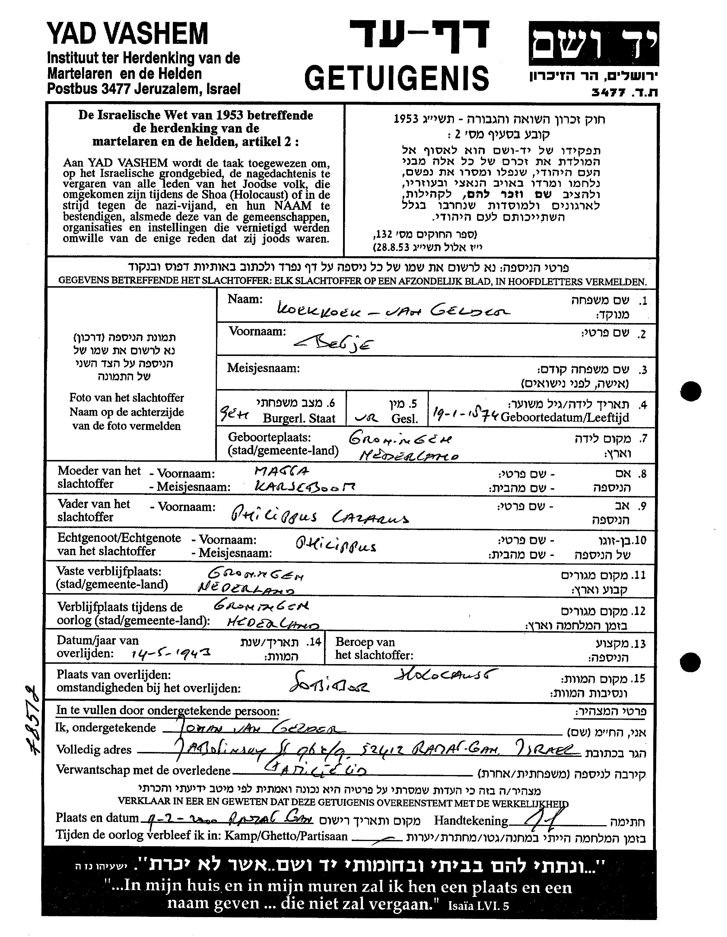 Betje Koekkoek, geb. Gelder van wurde im Jahr 1874 in Groningen, Niederlande geboren. Sie war die Tochter von Philippus Lazarus und Magda. Sie war mit Philippus Verheiratet. Vor dem Zweiten Weltkrieg lebte sie in Groningen, Niederlande. Während des Krieges war sie in Groningen, Niederlande.