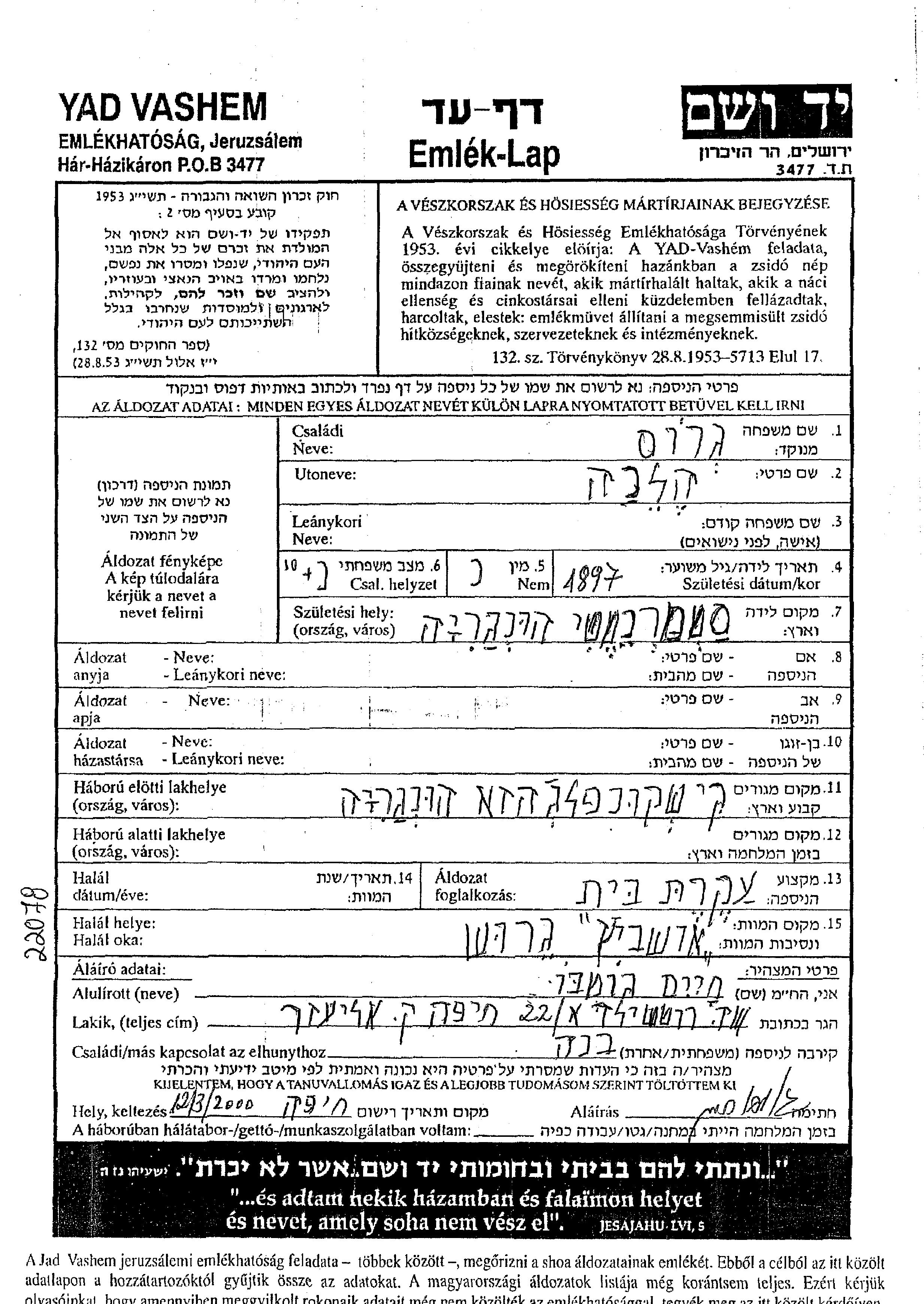 Helena wurde in der Schoah ermordet. Todesort: Auschwitz, Polen.