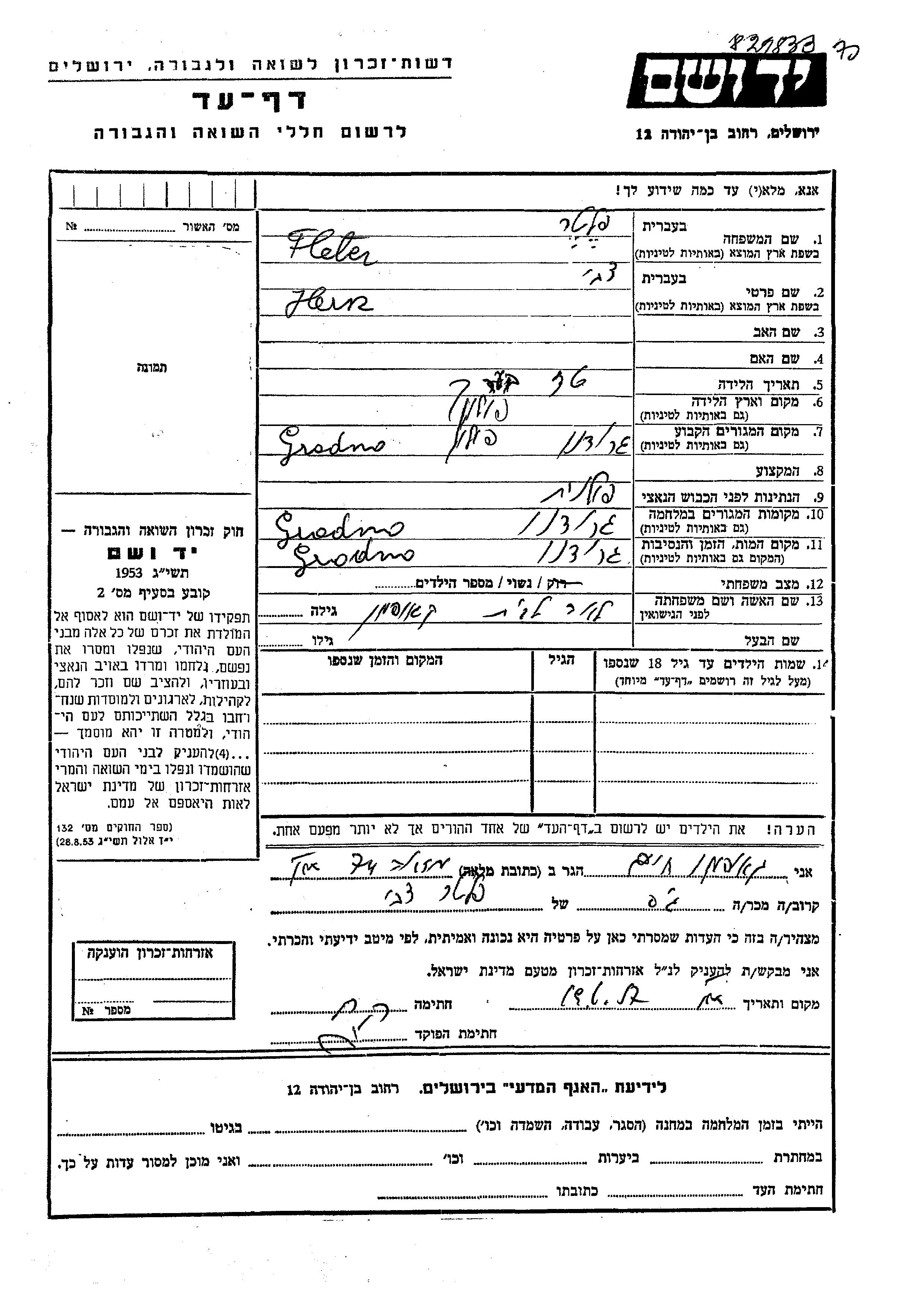 Fleter Hersz Tzvi Grodno, Polen Gedenkblatt