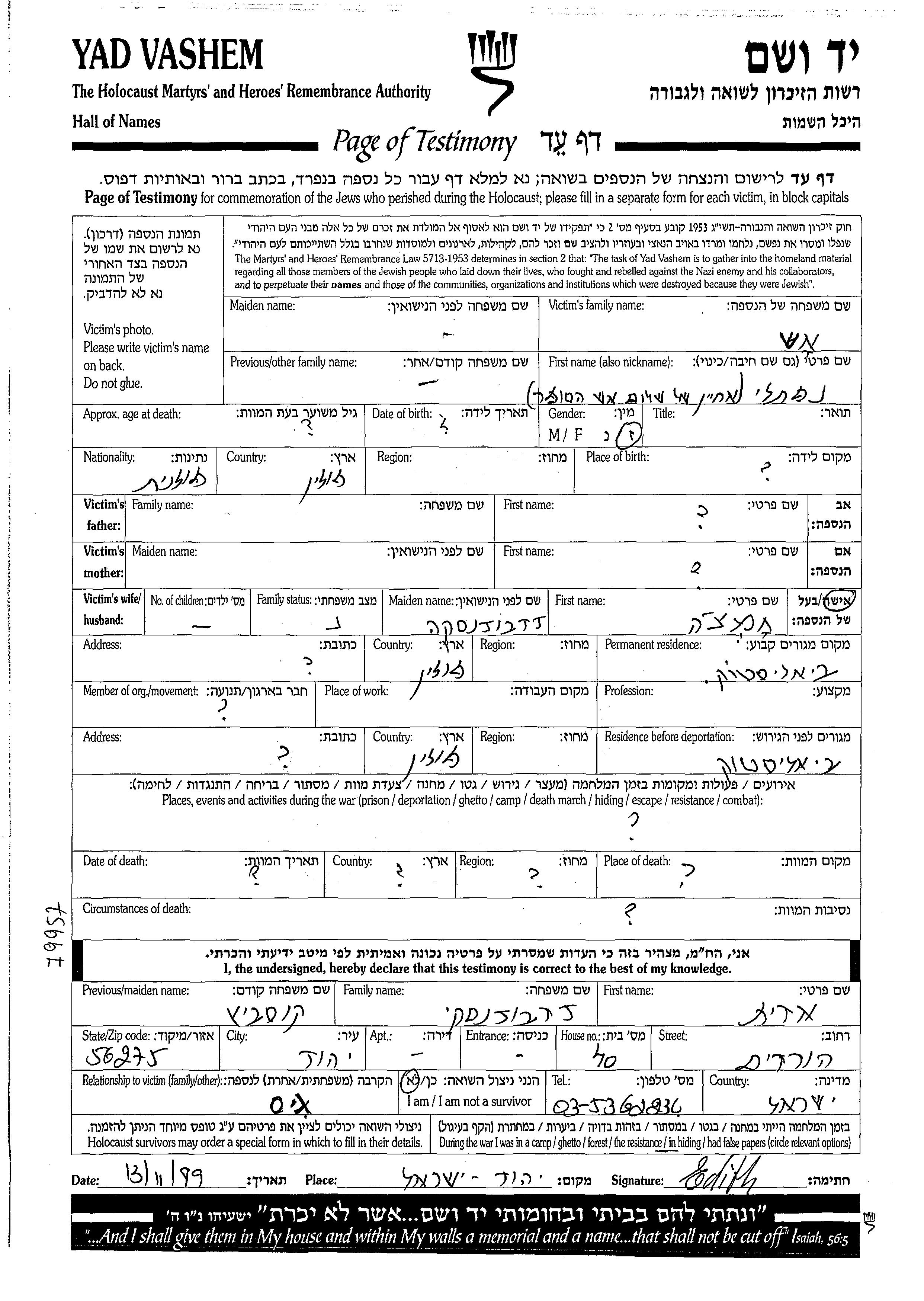 Naftali wurde in der Schoah ermordet.