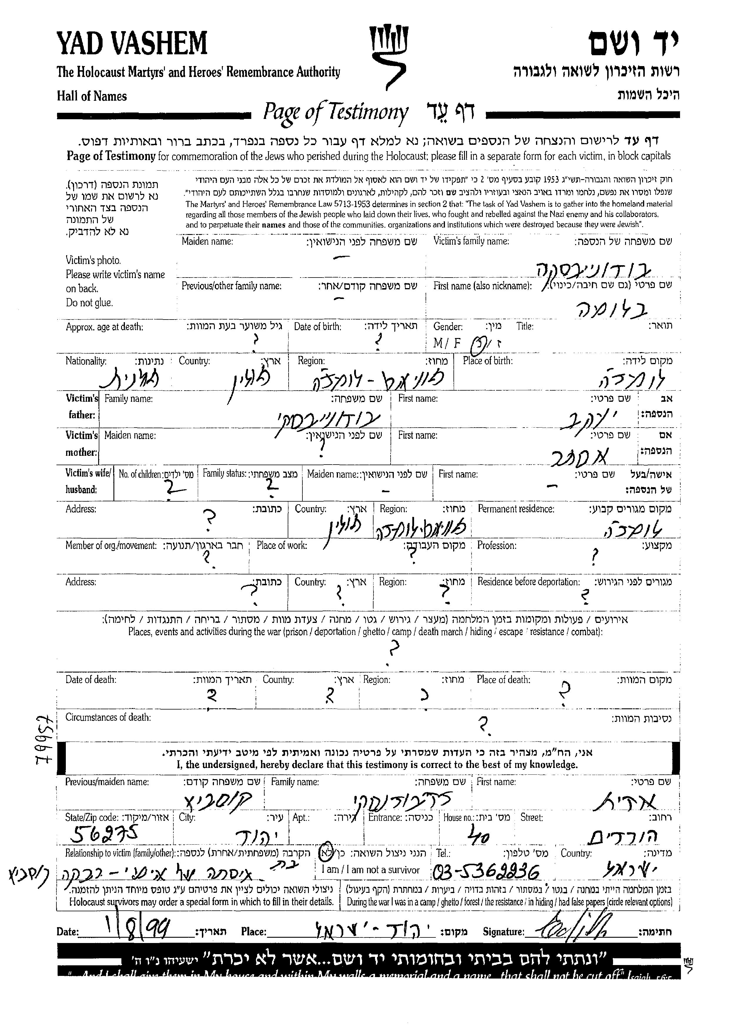 Budnevski Bluma Łomża, Polen Gedenkblatt