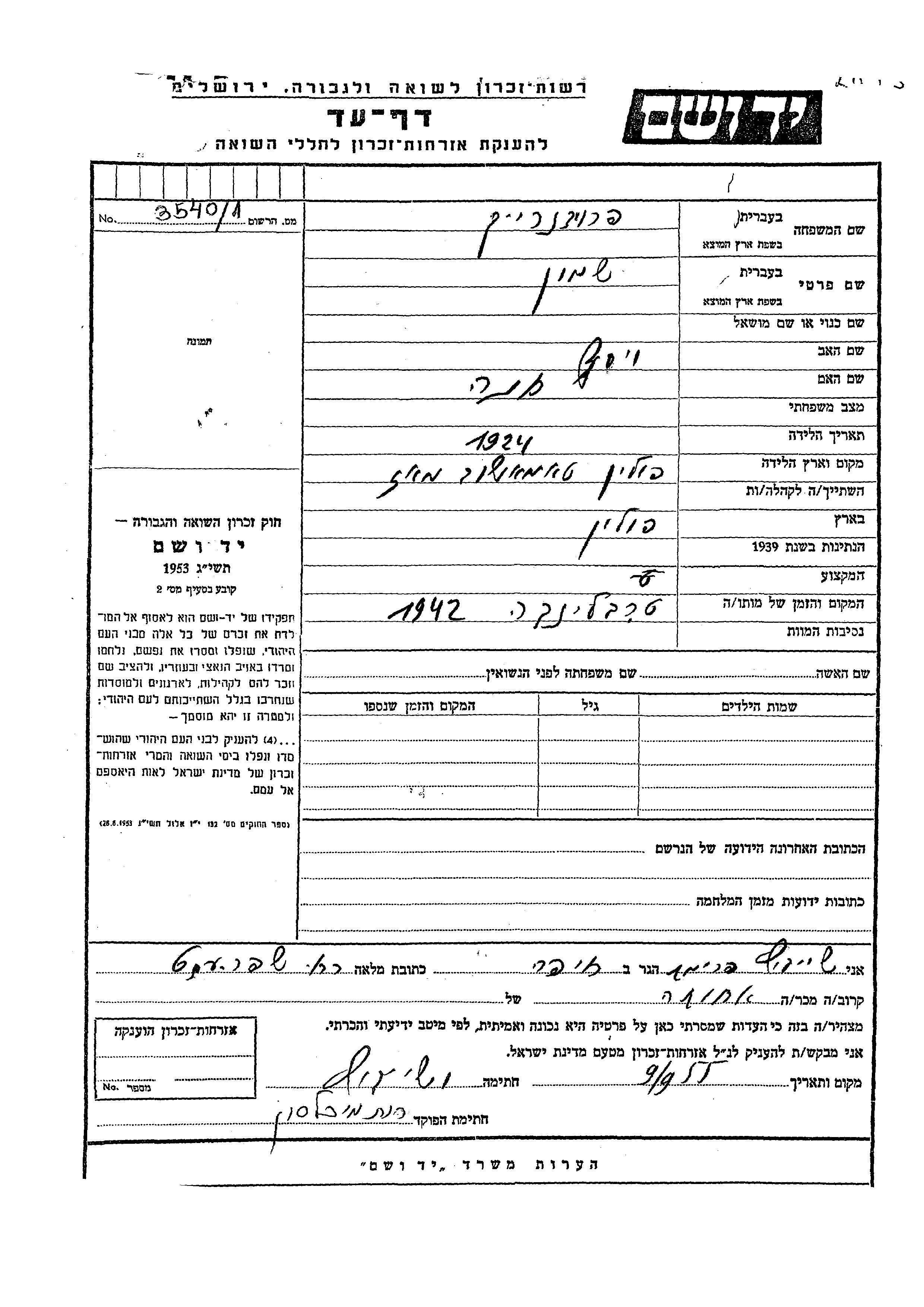 Shimon wurde in der Schoah ermordet. Todesort: Treblinka I, Polen im Jahr 1942.