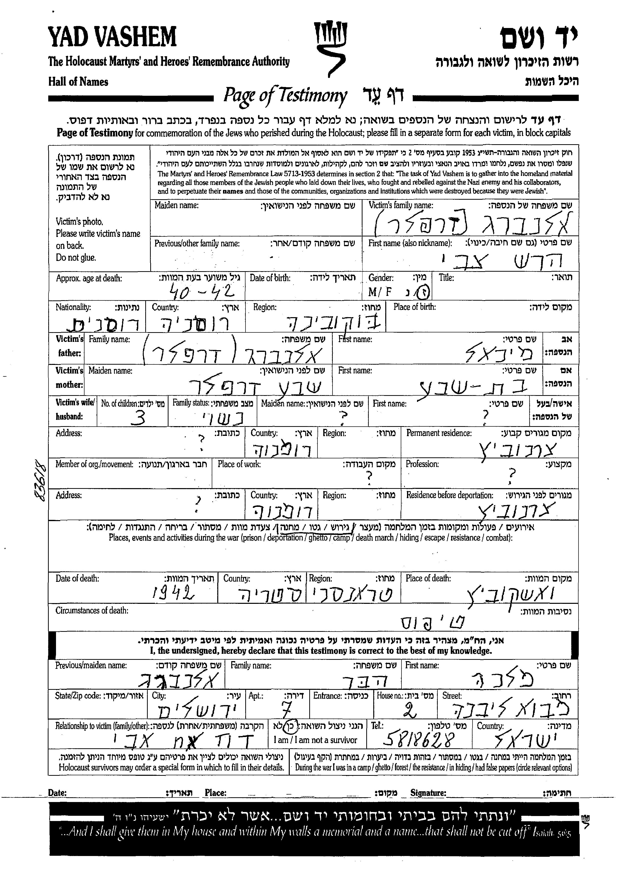 Hersh Tzvi wurde in der Schoah ermordet. Todesort: Vashkovtsy, Rumänien im Jahr 1942.