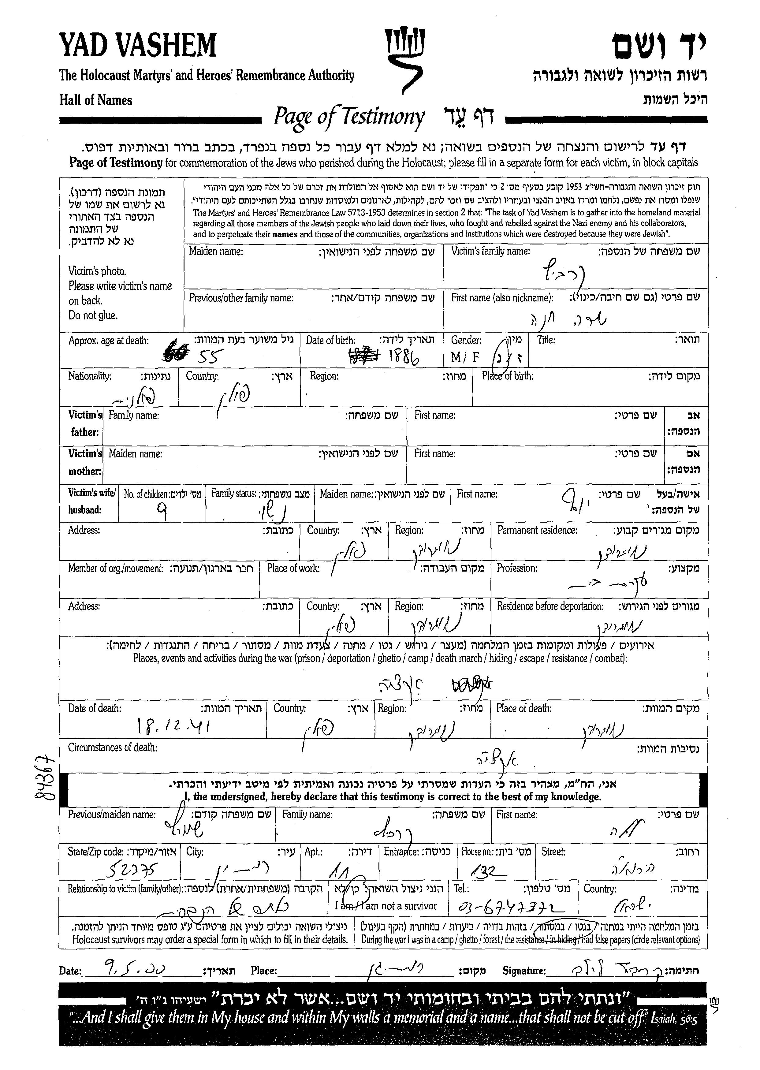 Sara Khana Kravitz wurde im Jahr 1886 in Polen geboren. Sie war Hausfrau und mit Yosef Verheiratet. Vor dem Zweiten Weltkrieg lebte sie in Nowogrodek, Polen. Während des Krieges war sie in Nowogrodek, Polen.