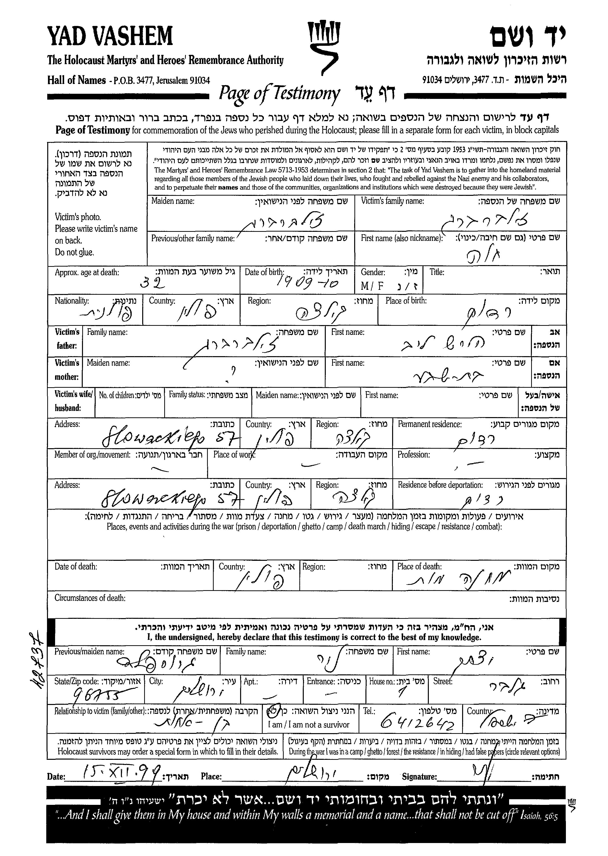 Yad Vashem - Gedenkblätter Sammlung