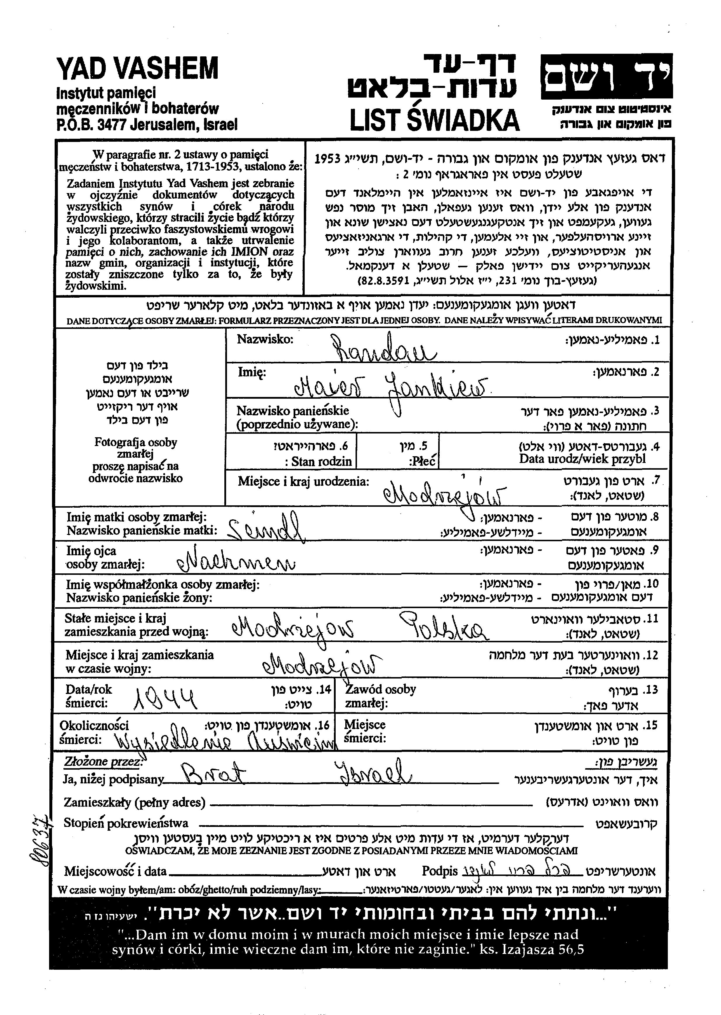 Maier Jankiew wurde in der Schoah ermordet. Todesort: Auschwitz, Polen im Jahr 1944.