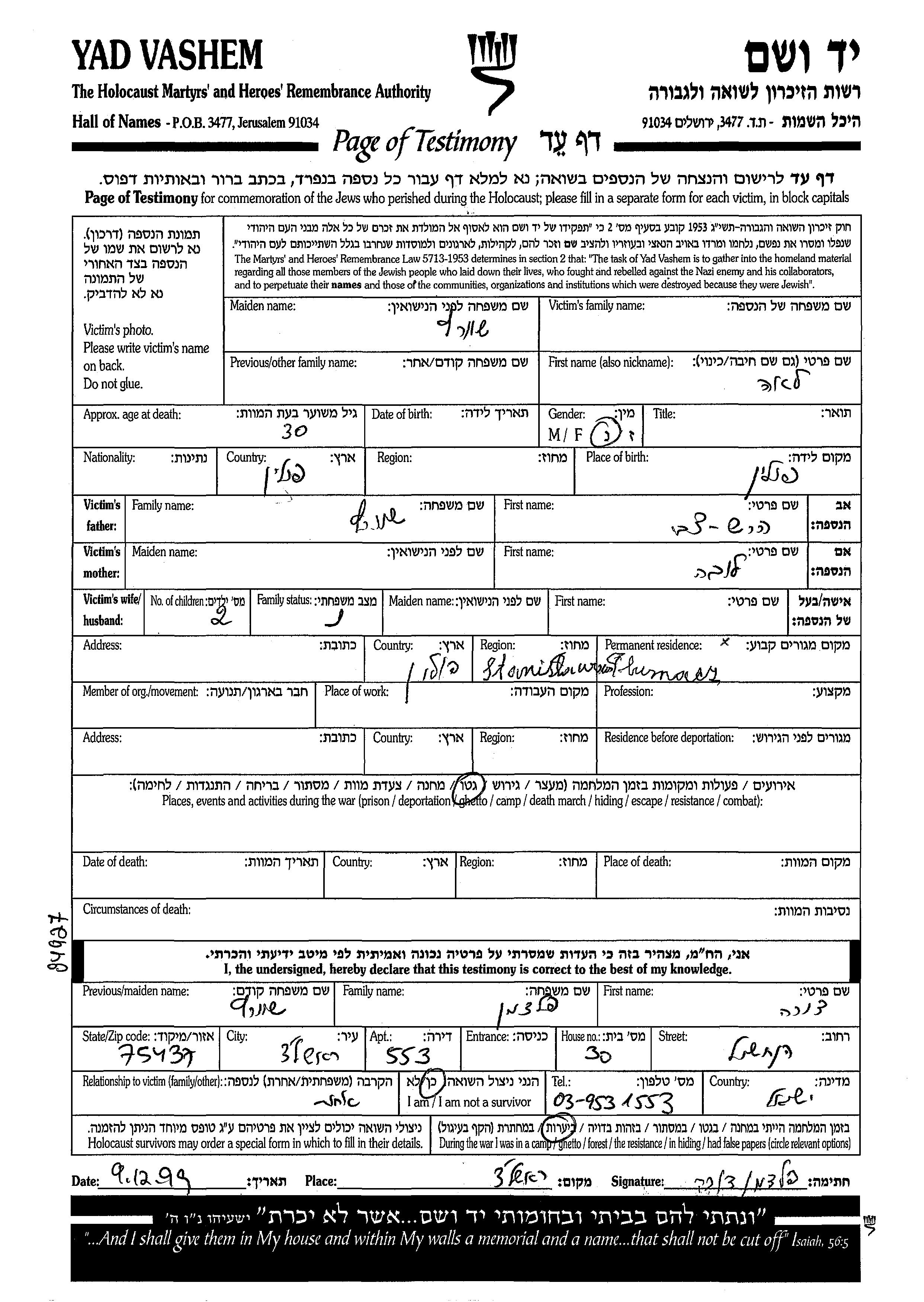 Name unbekannt Lea Tlumaczyk, Polen Gedenkblatt