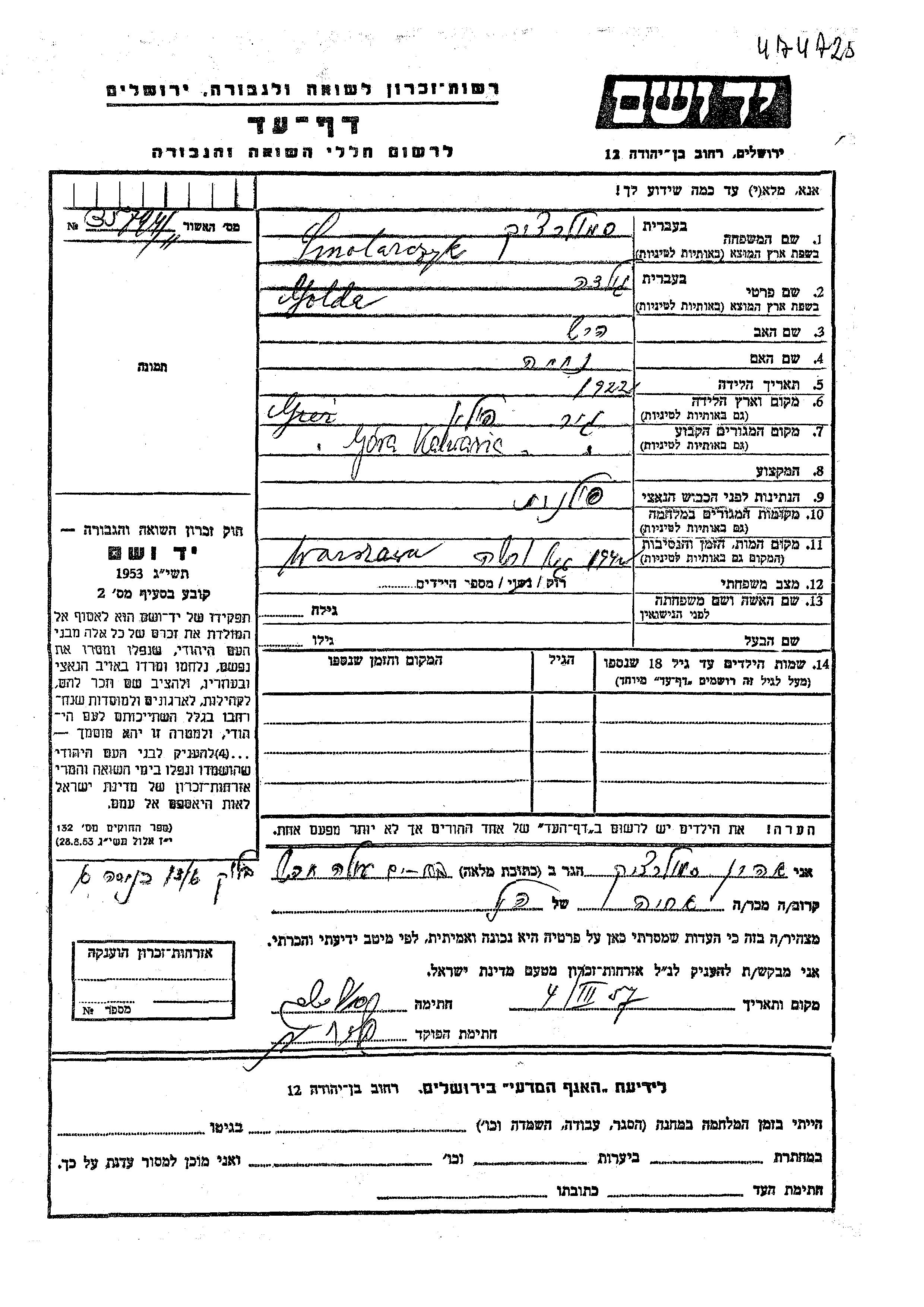 Golda Smolarczyk wurde im Jahr 1922 in Ger, Polen geboren. Sie war die Tochter von Hersh und Nekhama. Sie war Ledig. Vor dem Zweiten Weltkrieg lebte sie in Gora Kalwaria, Polen.
