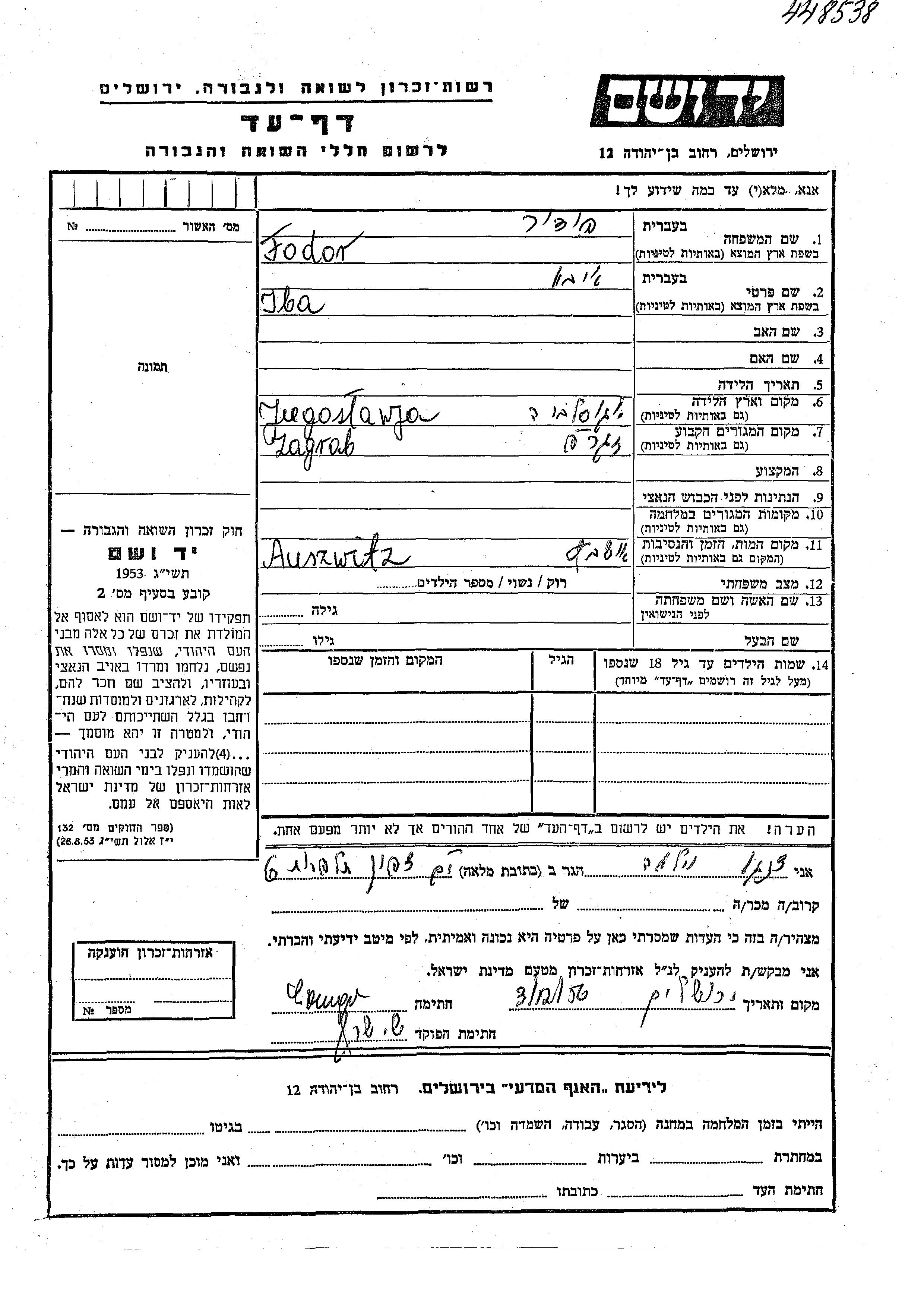 Fodor Iba Ivo Zagrab, Jugoslawien Gedenkblatt