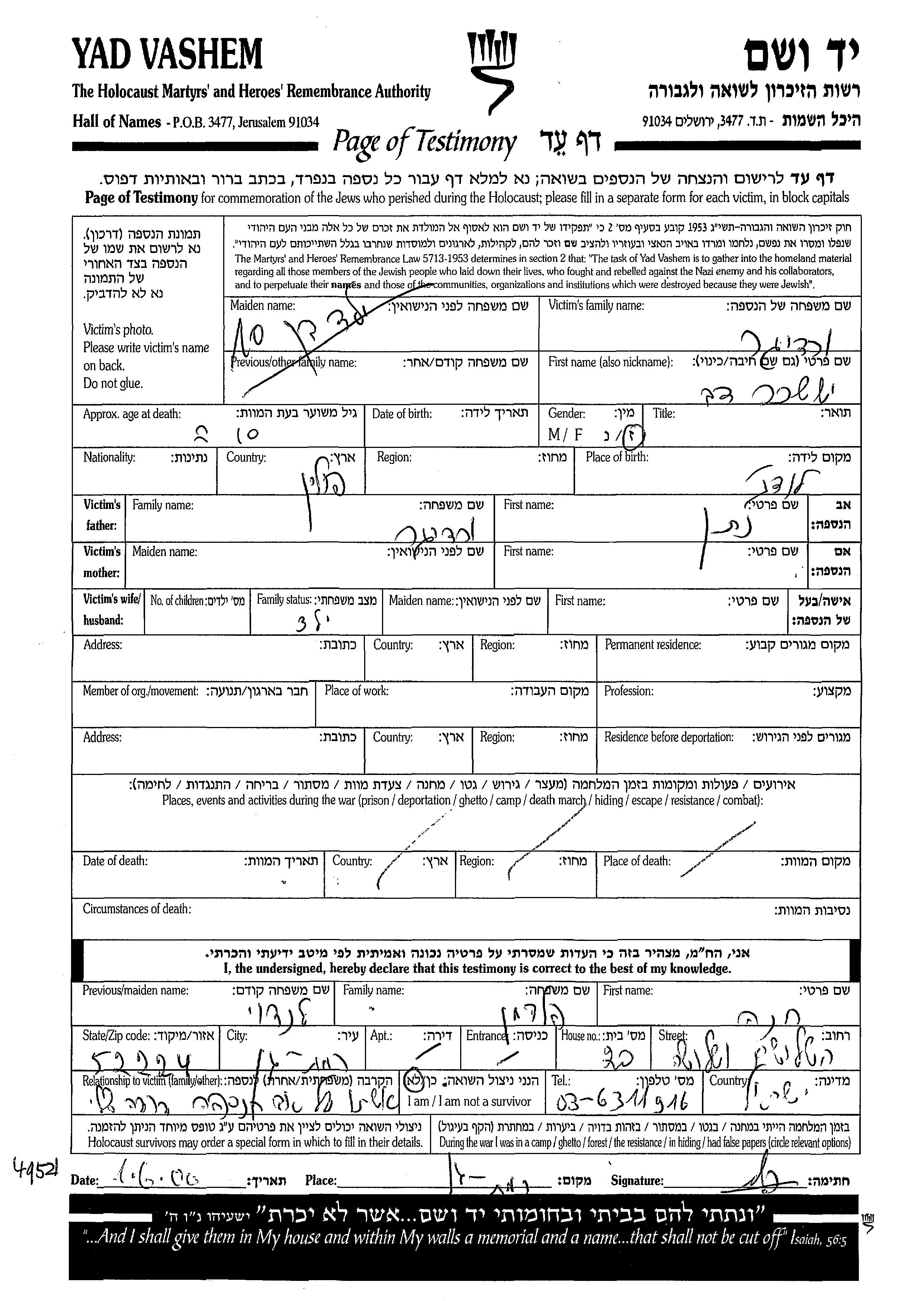 Verdiger Issakhar Dov unbekannter Ort, Gedenkblatt