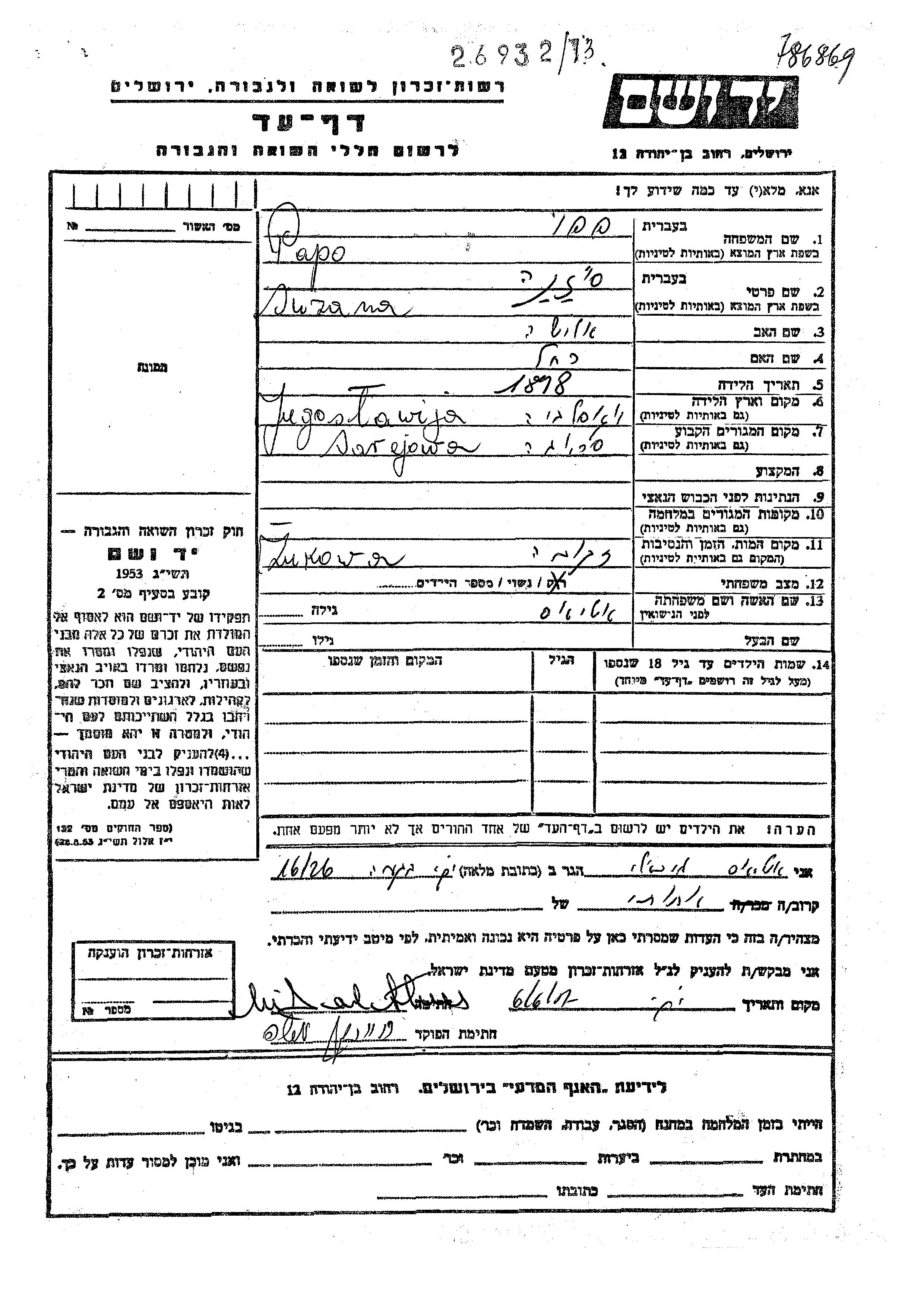 Suzana wurde in der Schoah ermordet. Todesort: Zukowa, Jugoslawien.