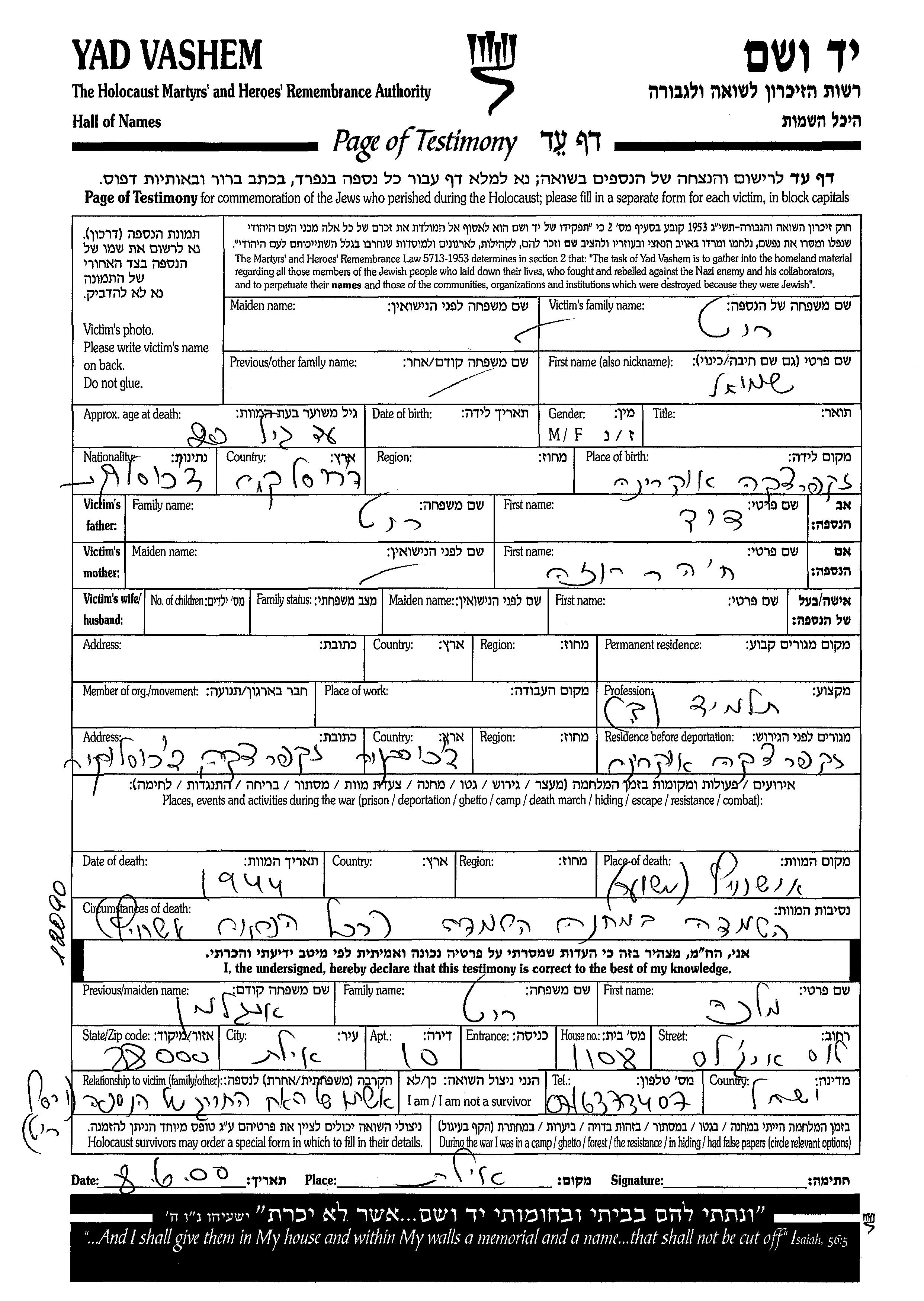 Shmuel wurde in der Schoah ermordet. Todesort: Auschwitz, Polen im Jahr 1944.