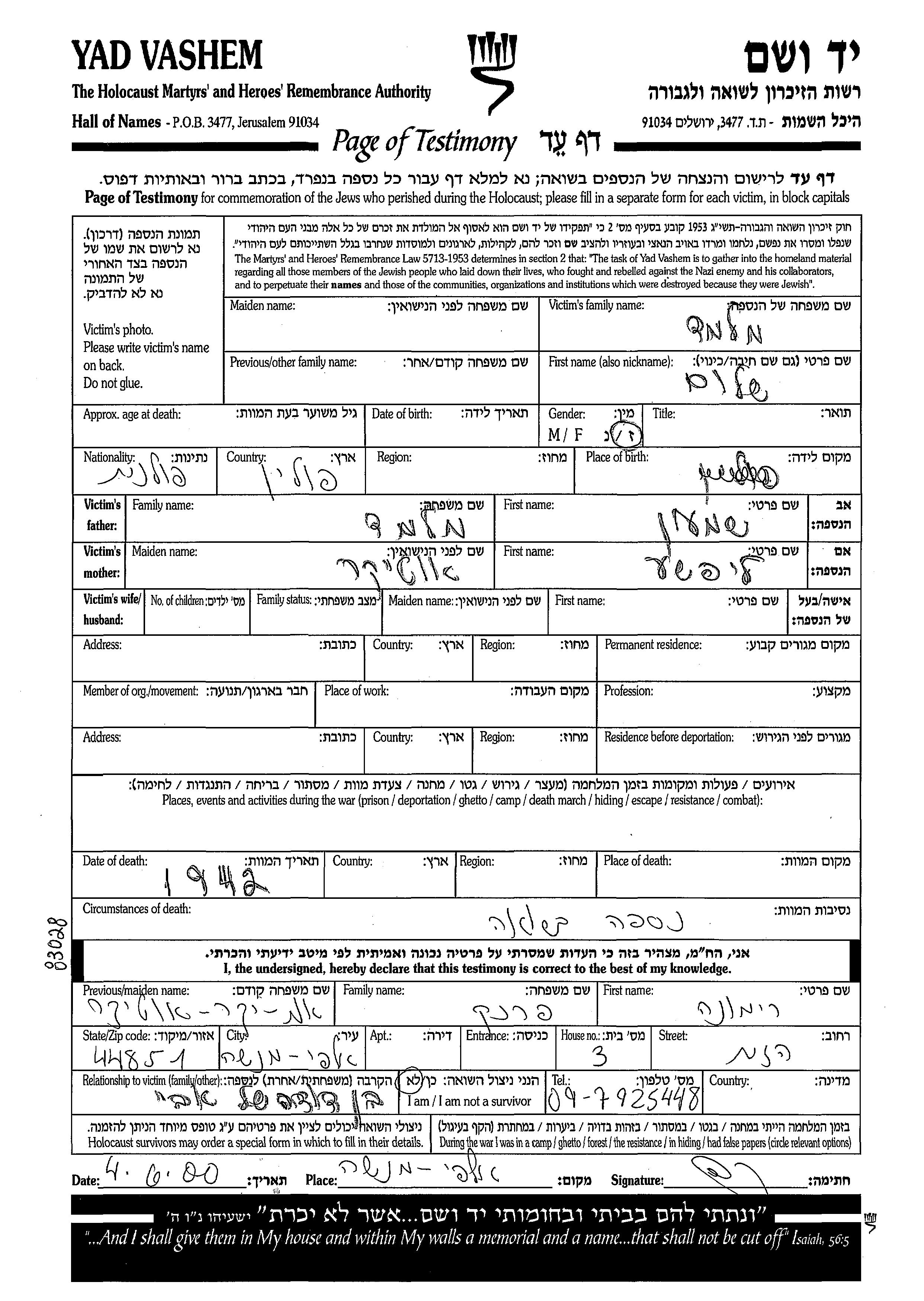 Shalom wurde in der Schoah ermordet. Todesort: unbekannt im Jahr 1942.