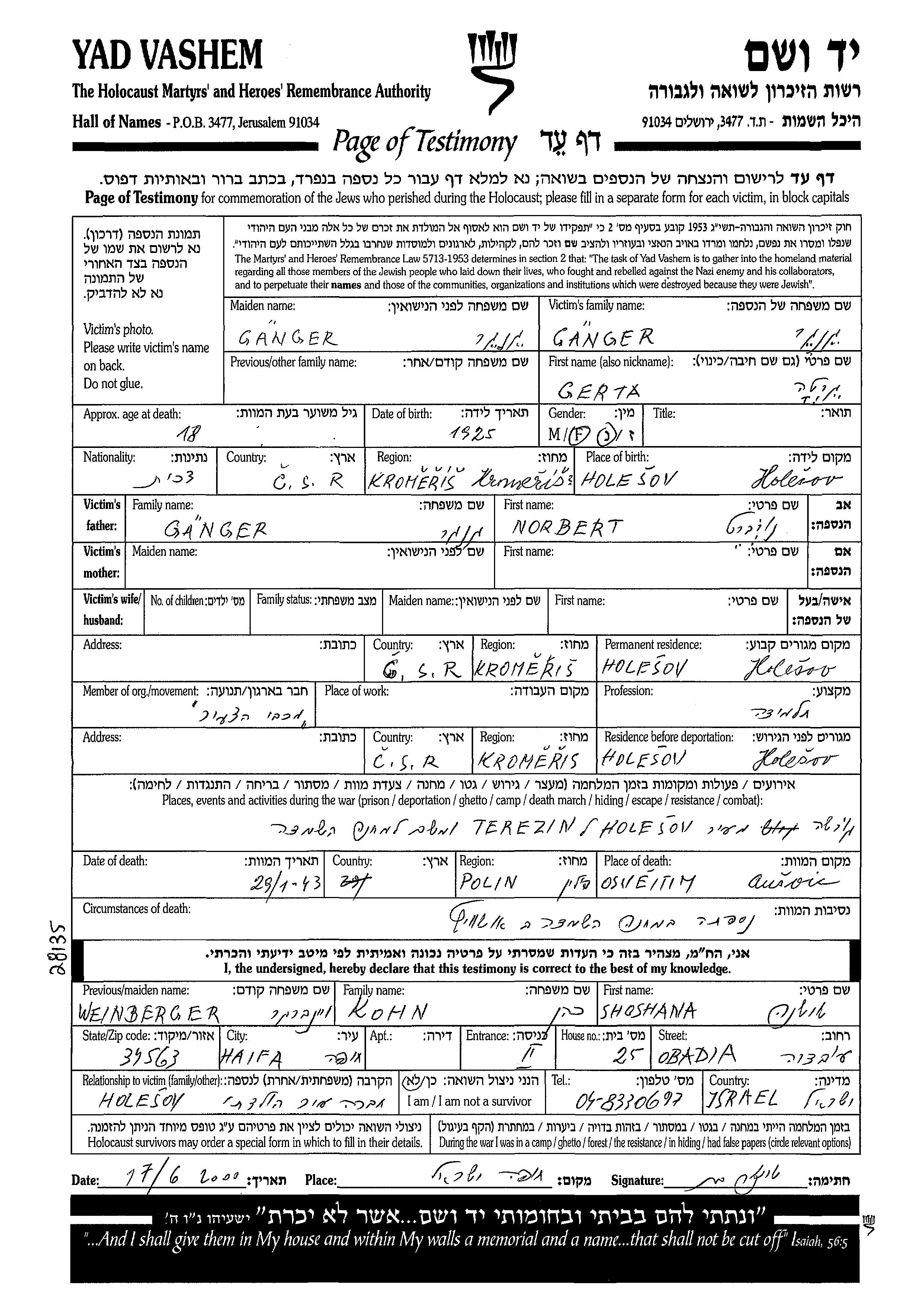 Greta wurde in der Schoah ermordet. Todesort: Auschwitz, Polen im Jahr 1943.