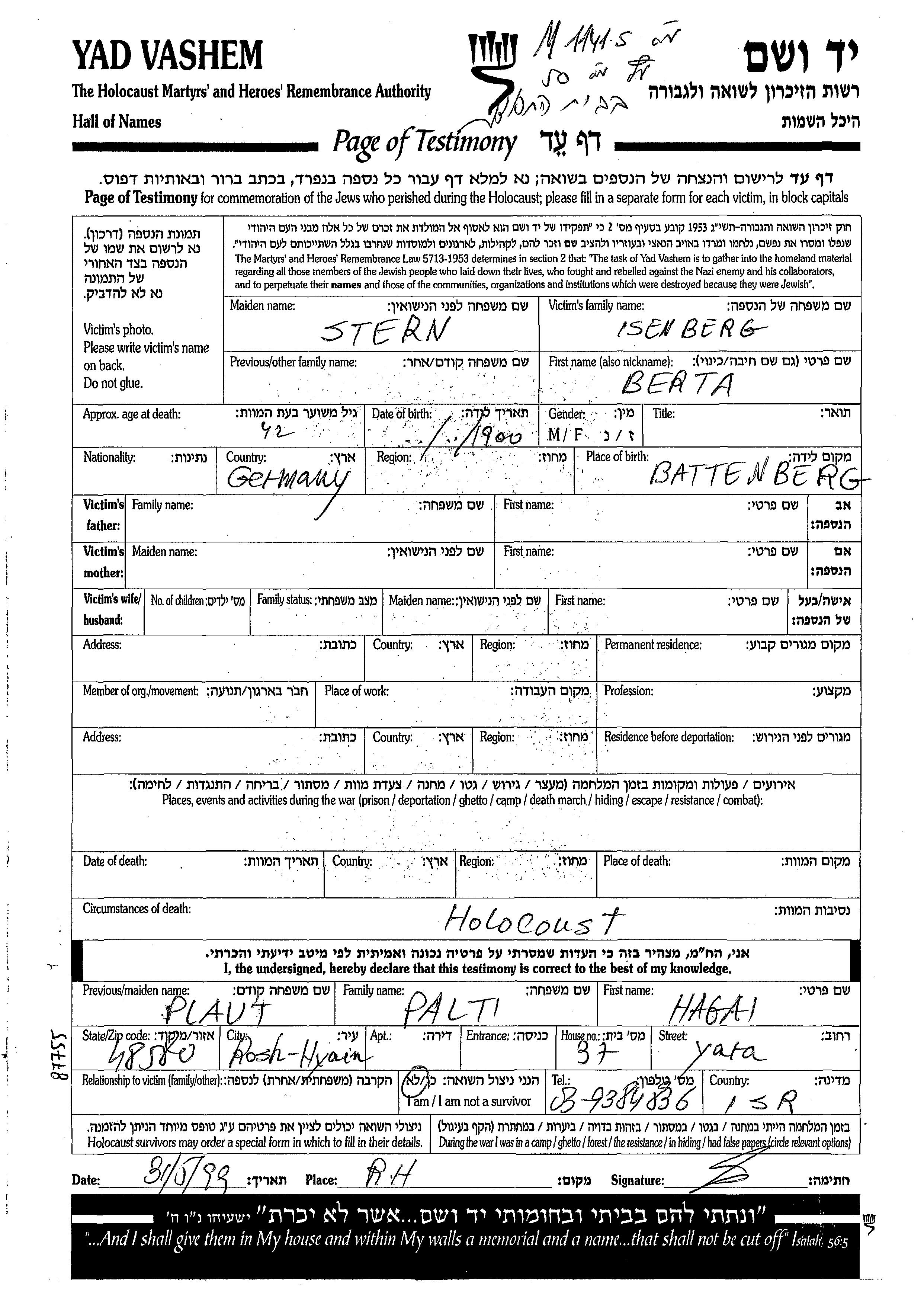Berta Isenberg, geb. Stern wurde im Jahr 1900 in Battenberg, Deutsches Reich geboren.