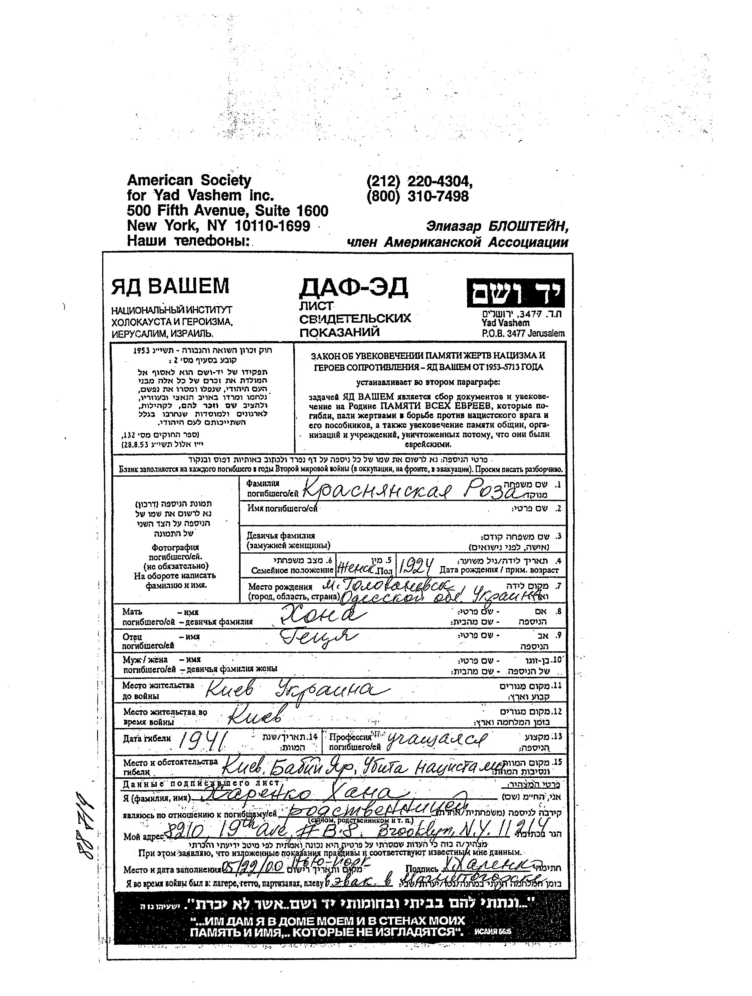 Roza wurde in der Schoah ermordet. Todesort: Babi Yar, Ukraine (UdSSR) im Jahr 1941.