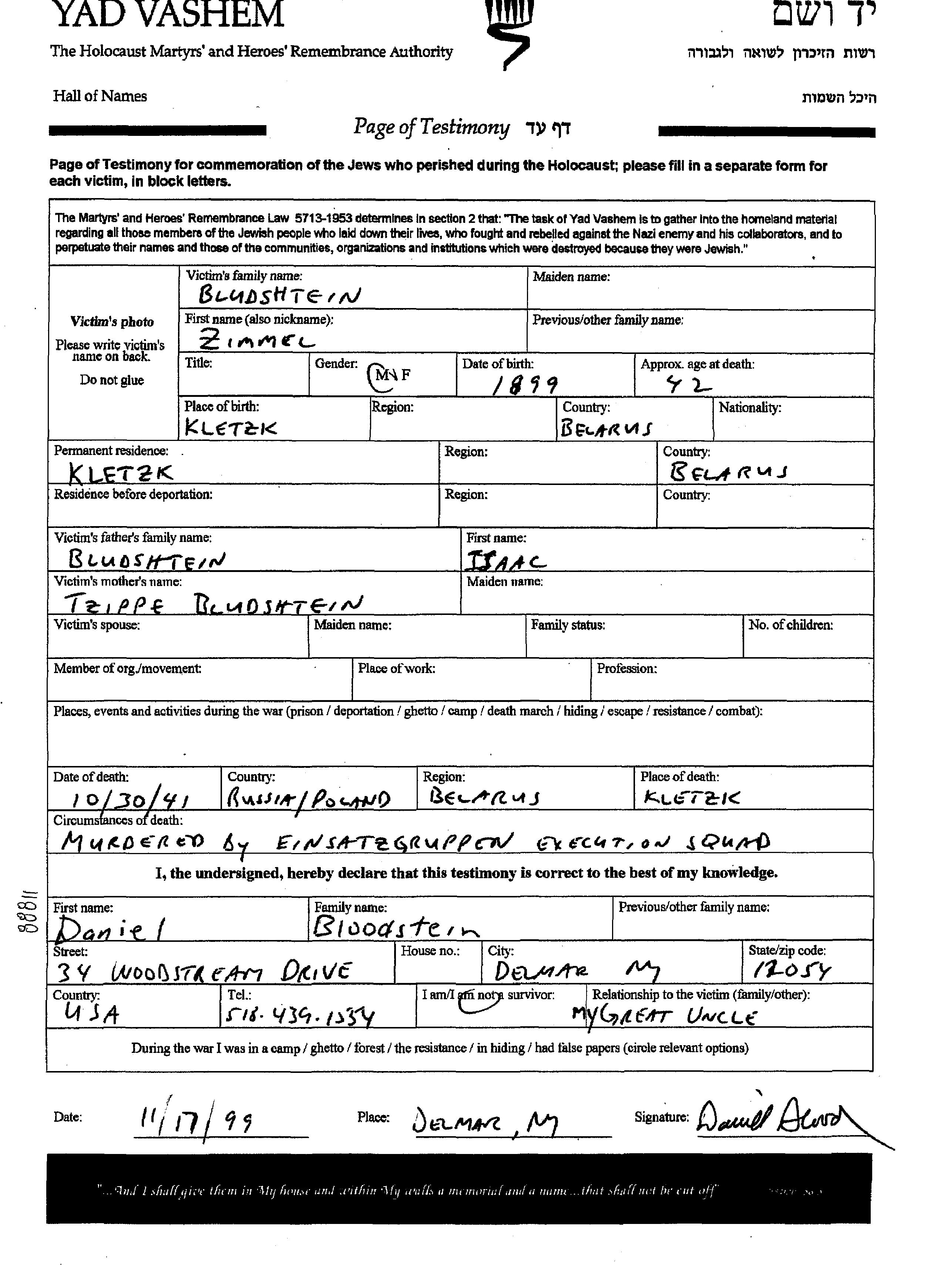 Zimmel wurde in der Schoah ermordet. Todesort: Kletzk, Polen im Jahr 1941.