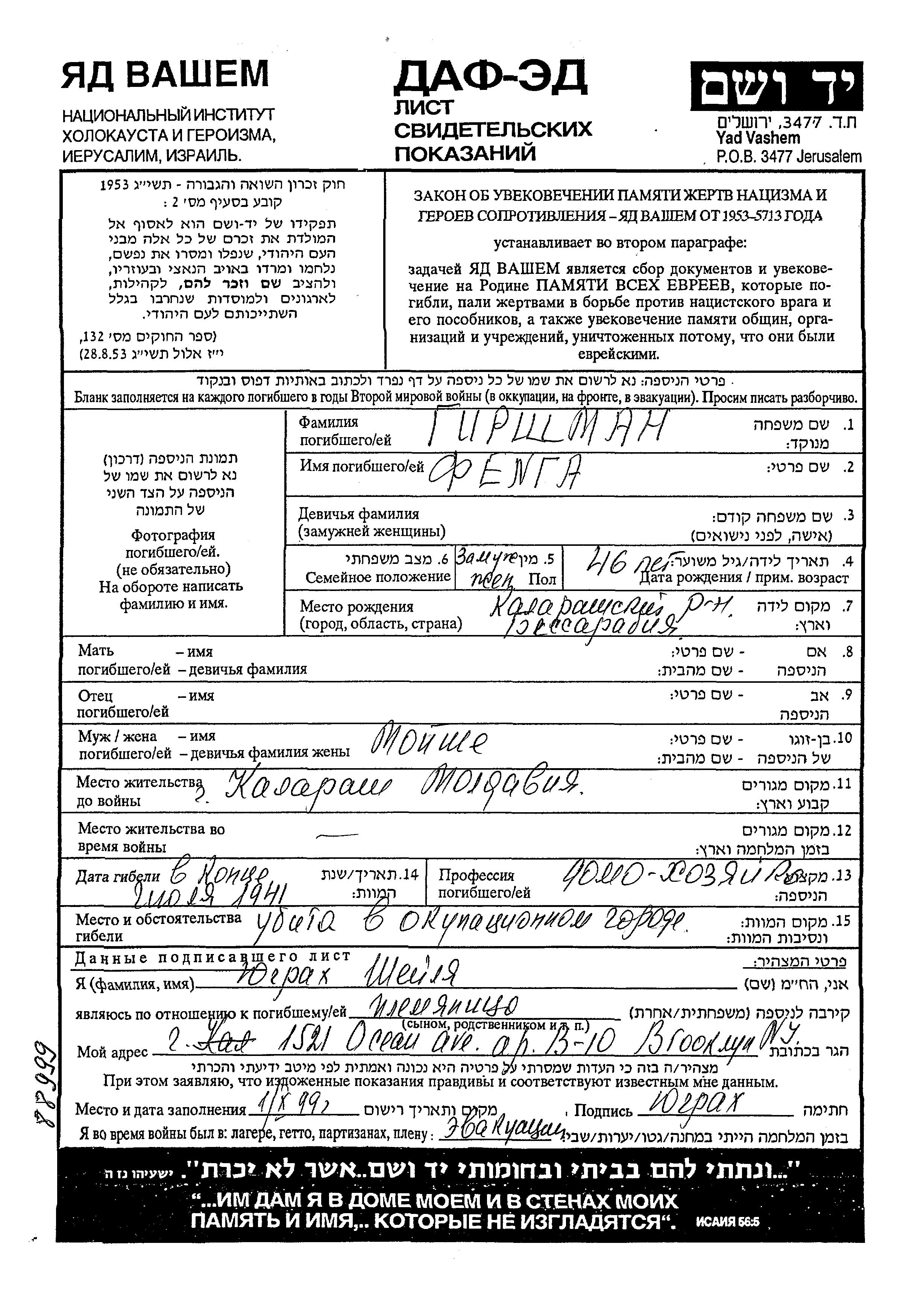 Feiga wurde in der Schoah ermordet. Todesort: Kalaras, Rumänien im Jahr 1941.