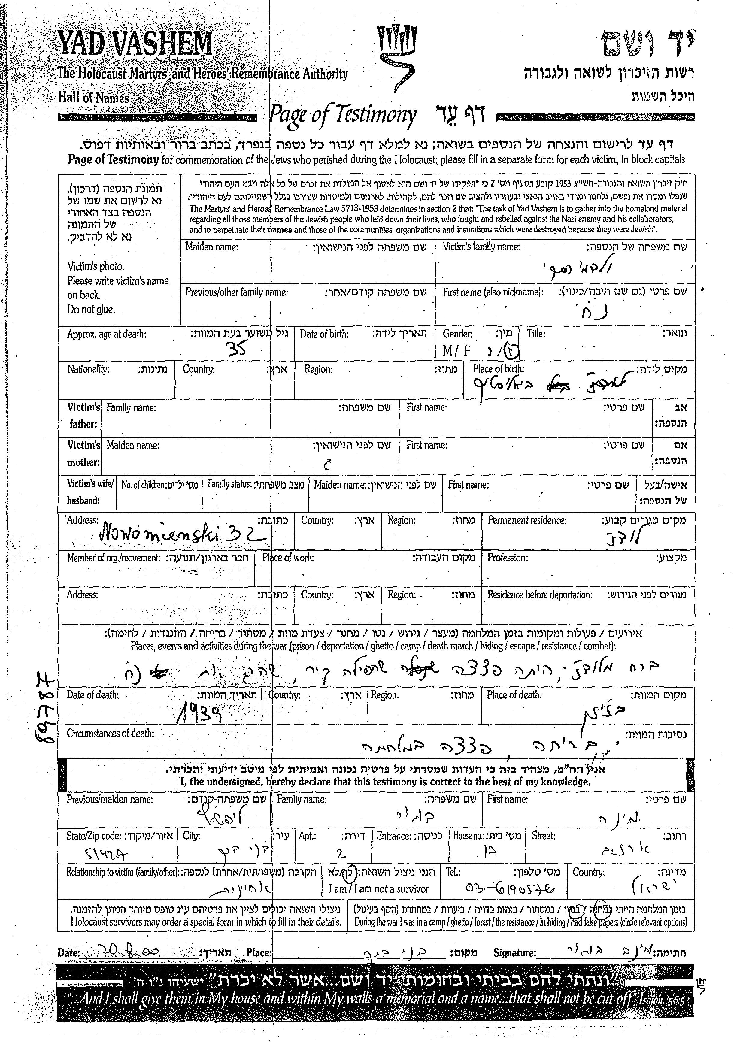 Noakh wurde in der Schoah ermordet. Todesort: Brzezin, Polen im Jahr 1939.