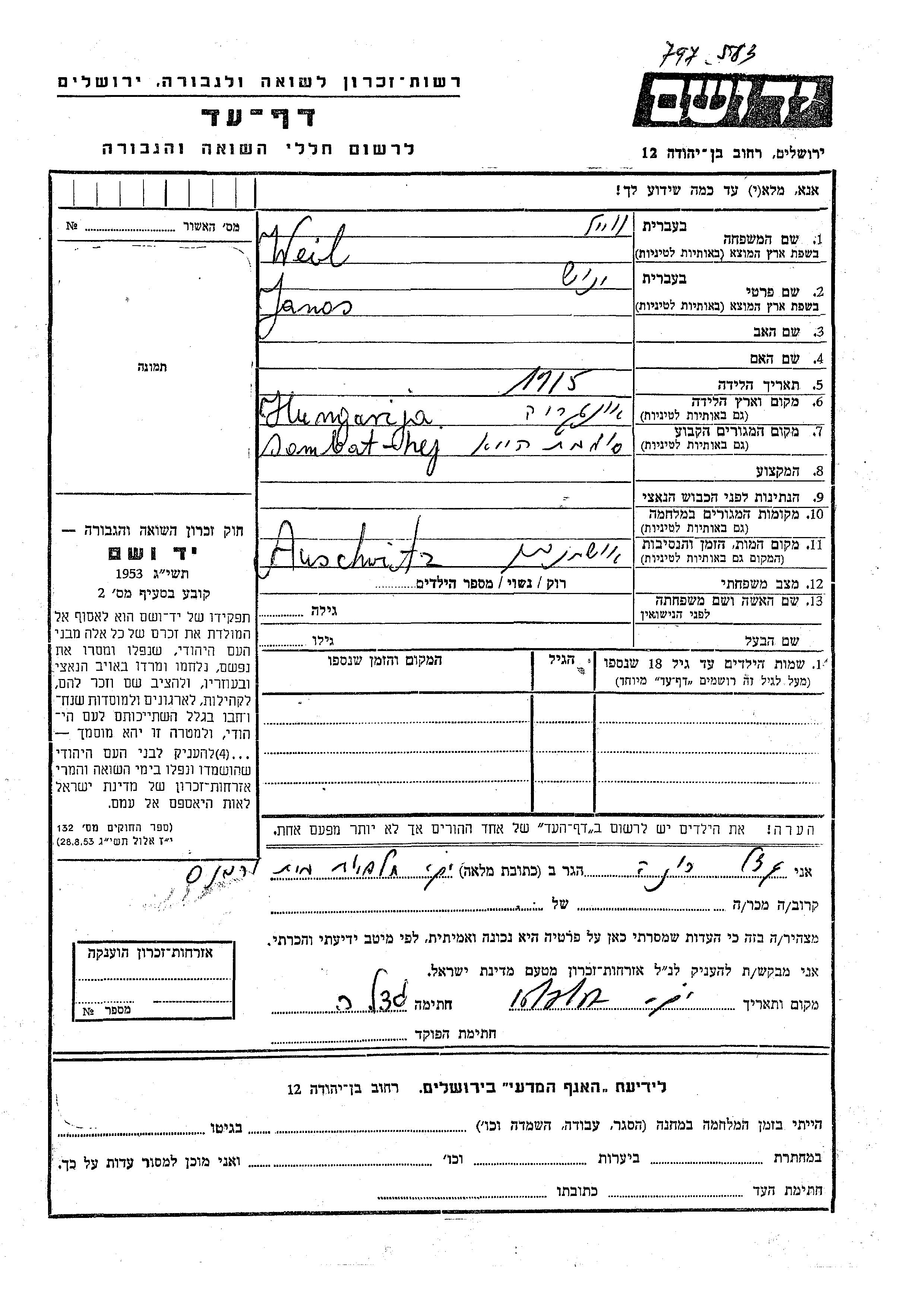 Yanosh wurde in der Schoah ermordet. Todesort: Auschwitz, Polen.