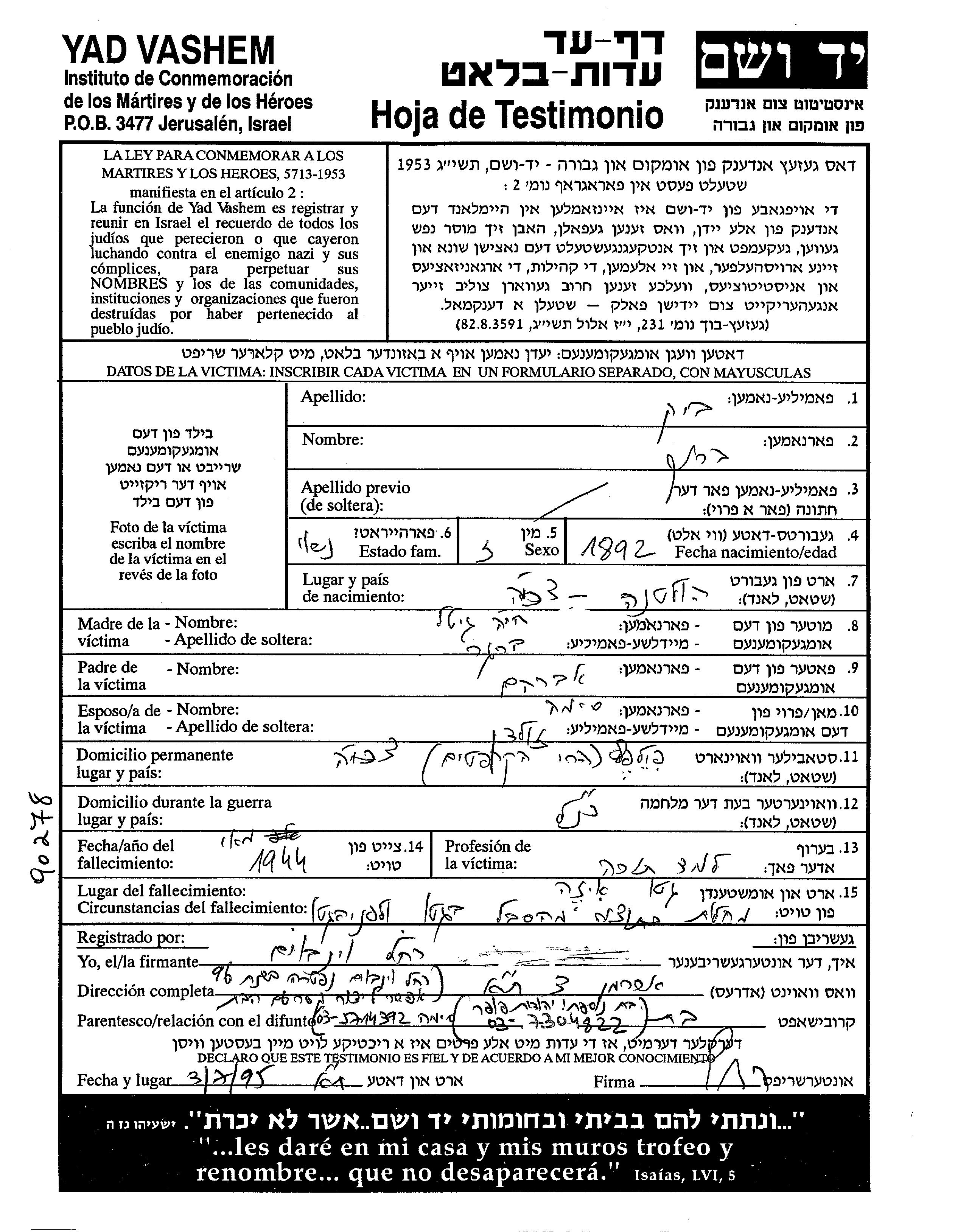 Barukh wurde in der Schoah ermordet. Todesort: Iza, Tschechoslowakei im Jahr 1944.