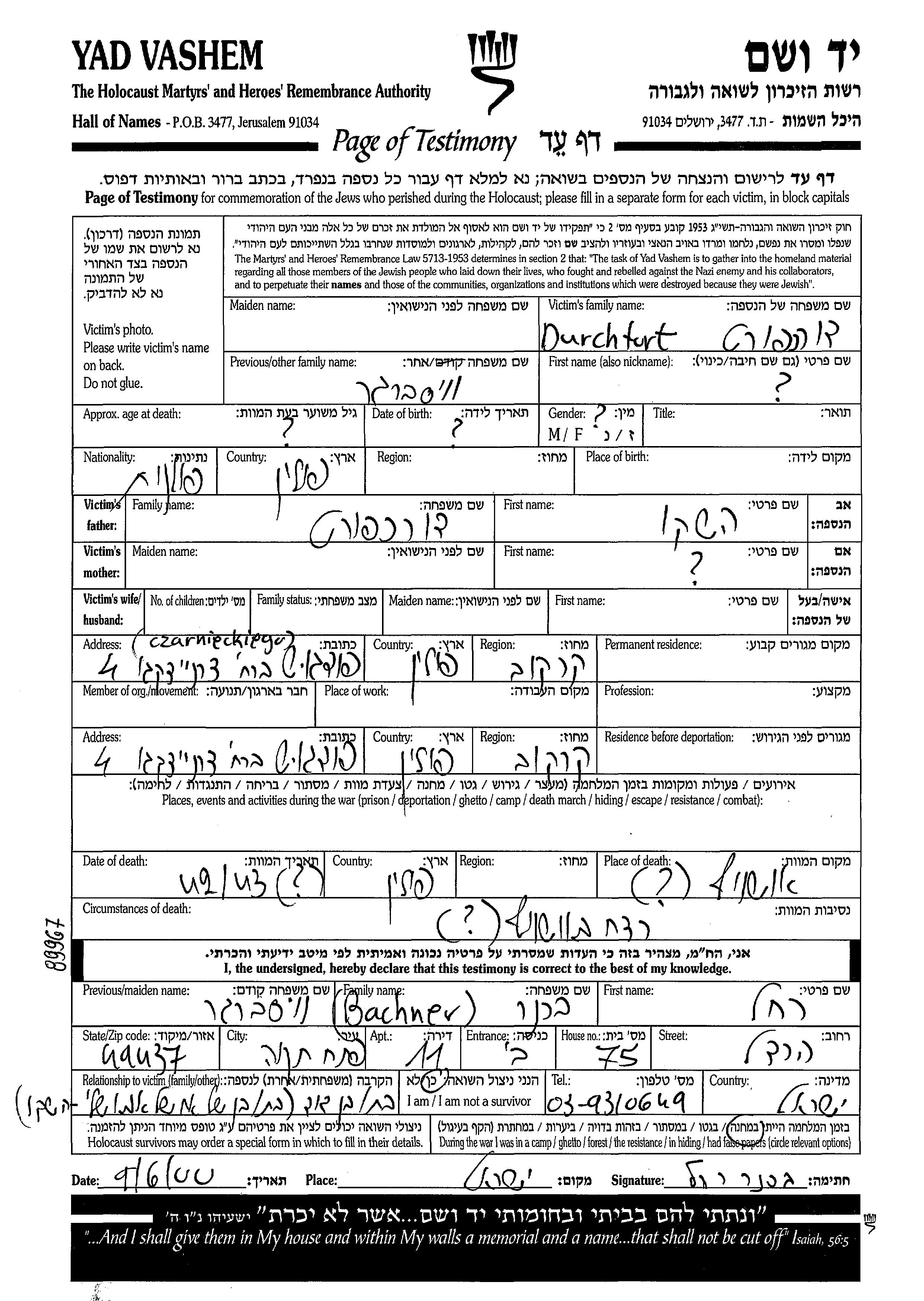 Vorname unbekannt Durchfort wurde in Polen geboren. Er war der Sohn von Hashko. Vor dem Zweiten Weltkrieg lebte er in Podgusz. Während des Krieges war er in Podgusz.