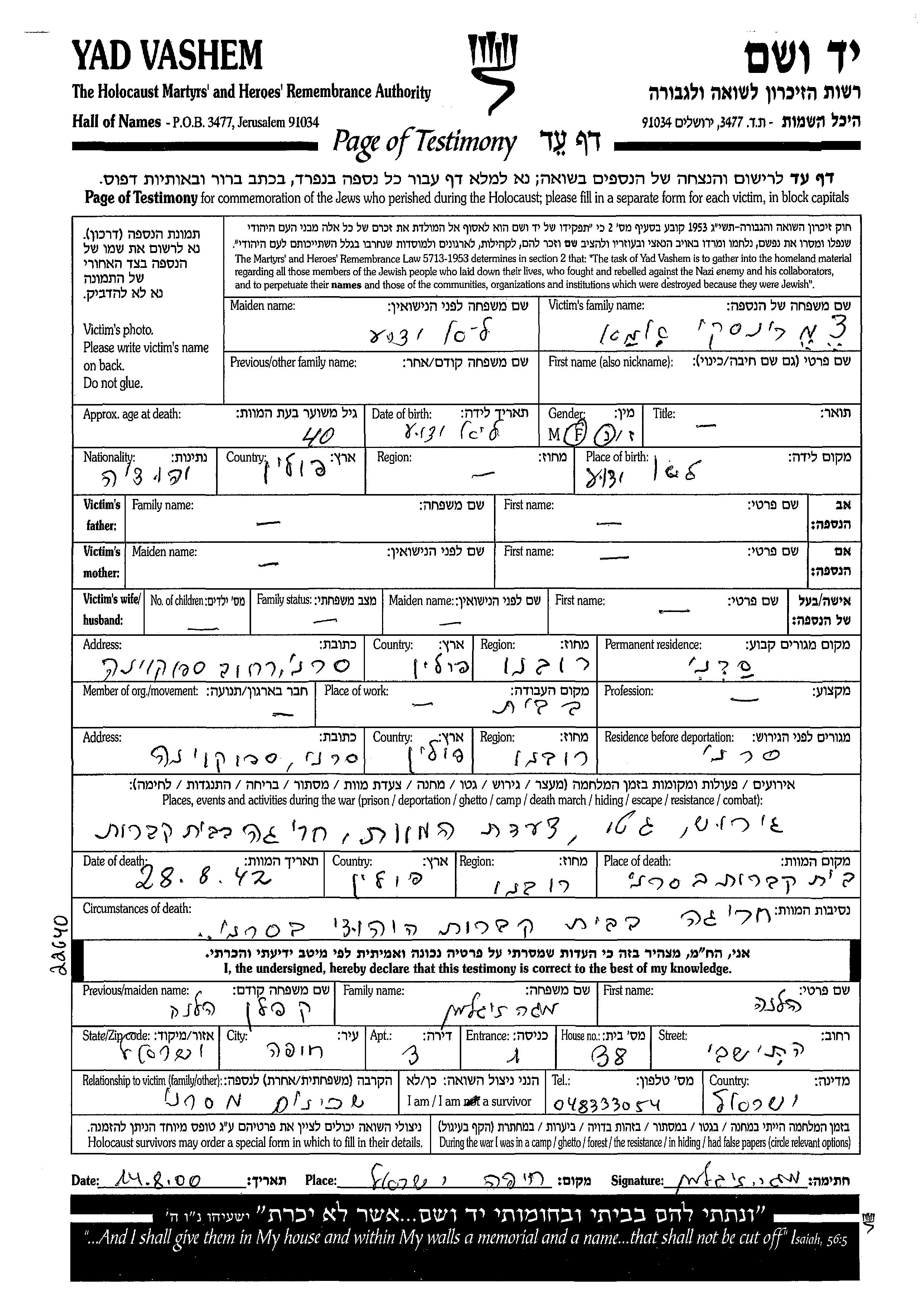 Vorname unbekannt Tzemerinski wurde in Polen geboren. Vor dem Zweiten Weltkrieg lebte sie in Sarny, Polen. Während des Krieges war sie in Sarny, Polen.
