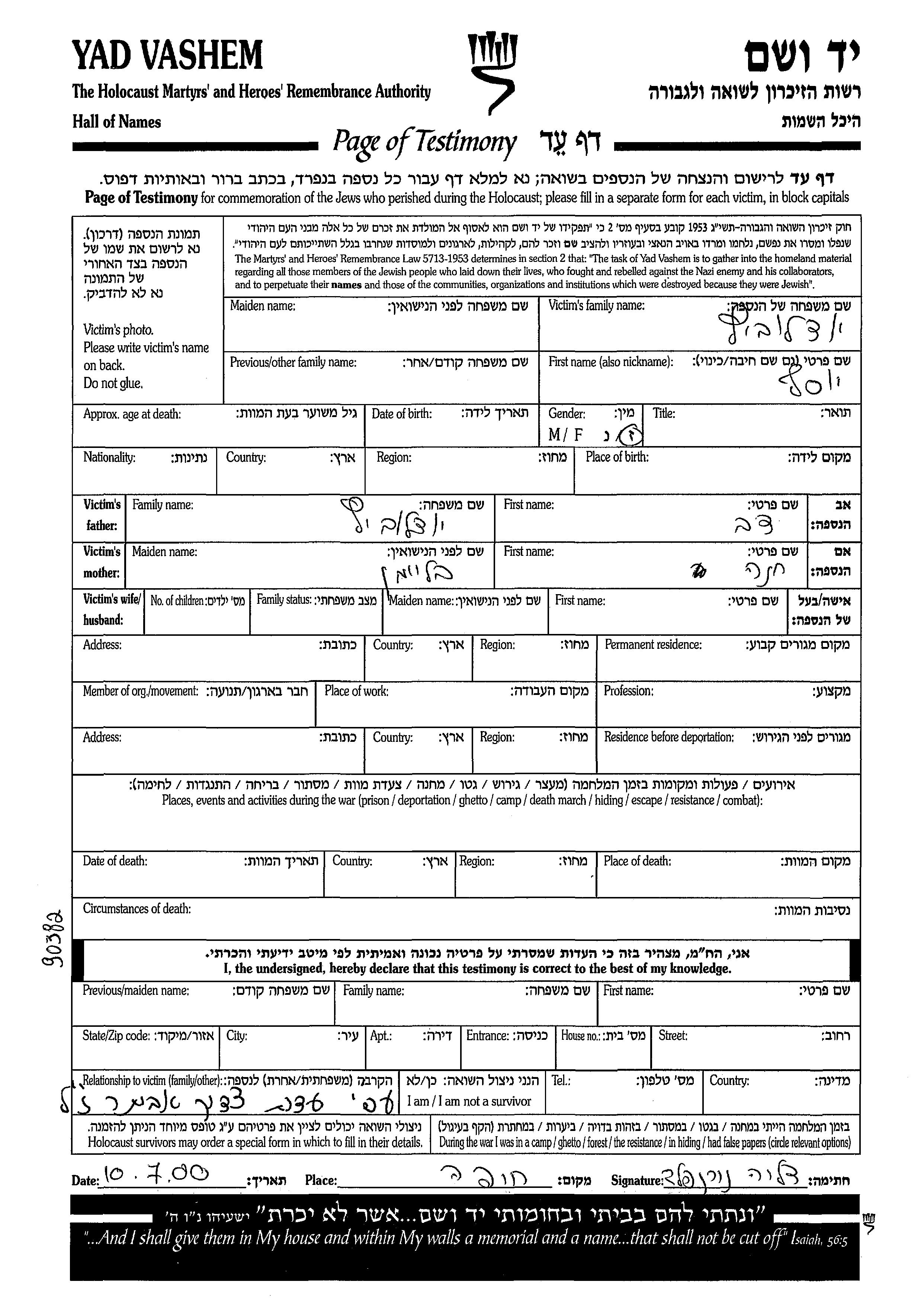 Iudelovitz Yosef unbekannter Ort, Gedenkblatt