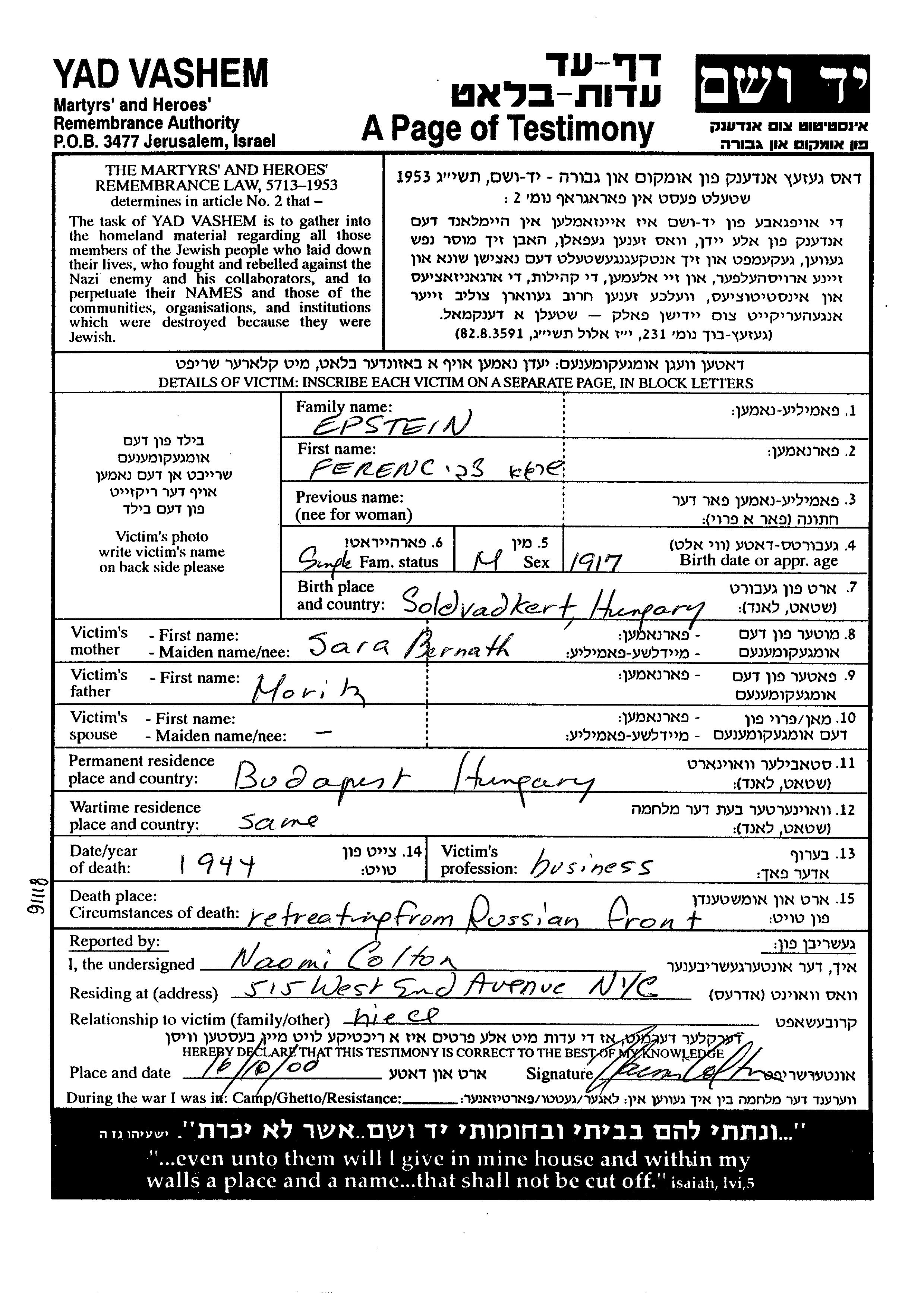 Suche nach einem Todesjahr im Zeitraum der Holocaust: 1933 bis 1945. Bitte wählen Sie 'Exakt' im Auswahlmenü, um nur nach einem einzelnen Jahr zu suchen, alternativ können Sie die flexibleren Optionen '+/- 2 Jahre' oder '+/- 5 Jahre' wählen.