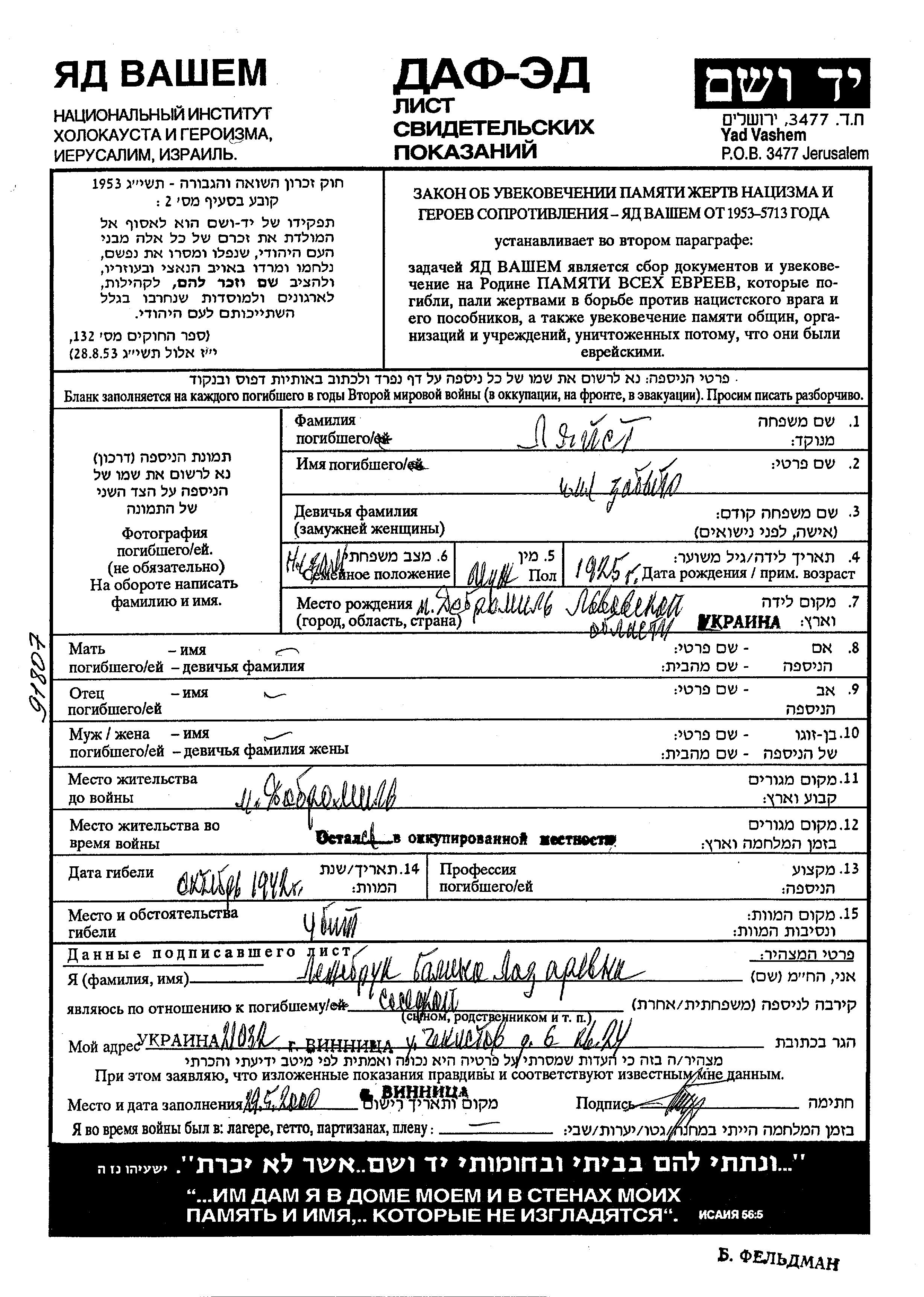 Vorname unbekannt Lyaist wurde im Jahr 1925 in Dobromil, Polen geboren. Er war Ledig. Vor dem Zweiten Weltkrieg lebte er in Dobromil, Polen. Während des Krieges war er in Dobromil, Polen.