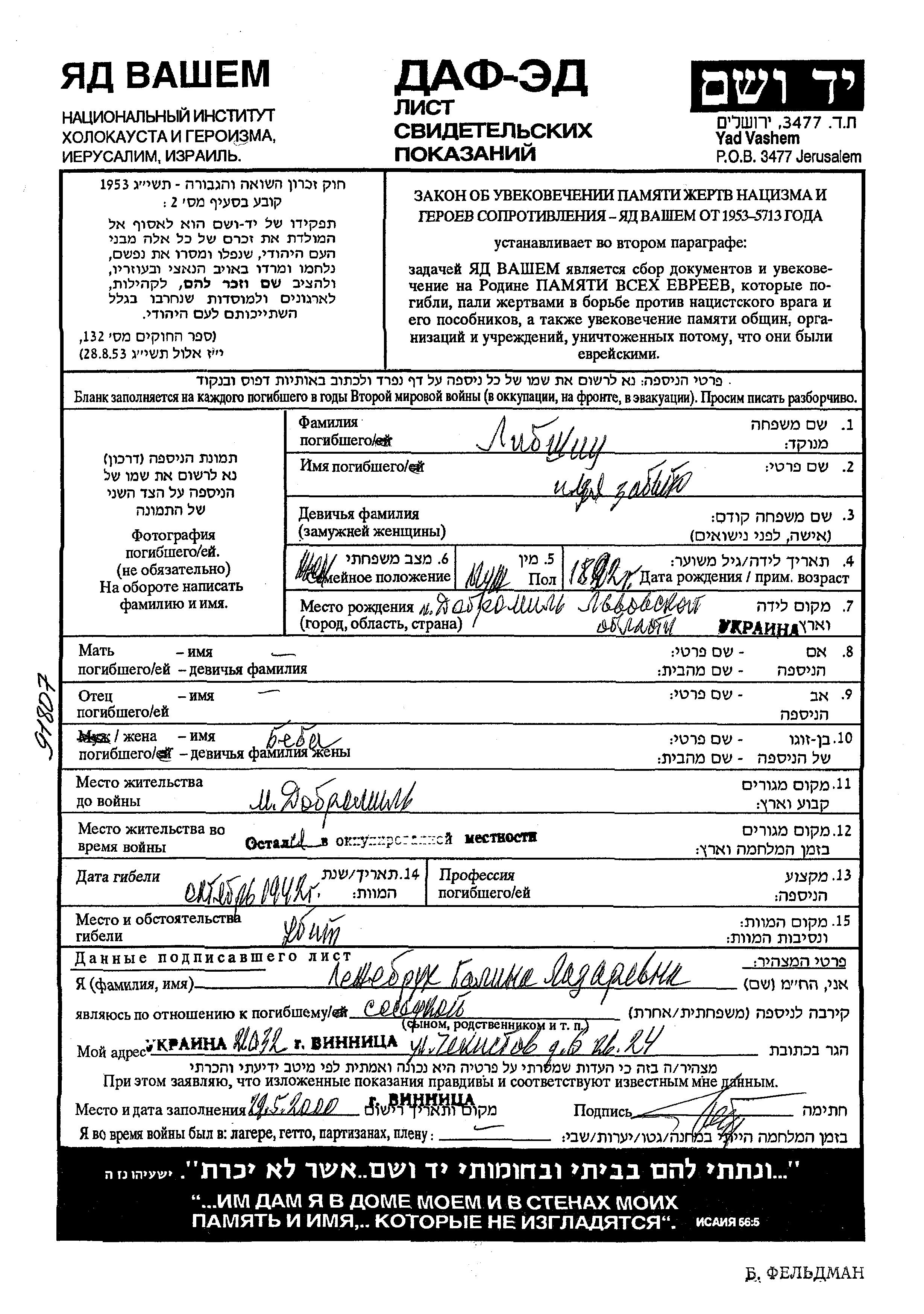 Vorname unbekannt Libshitz wurde im Jahr 1892 in Dobromil, Polen geboren. Er war mit Beba Verheiratet. Vor dem Zweiten Weltkrieg lebte er in Dobromil, Polen. Während des Krieges war er in Dobromil, Polen.