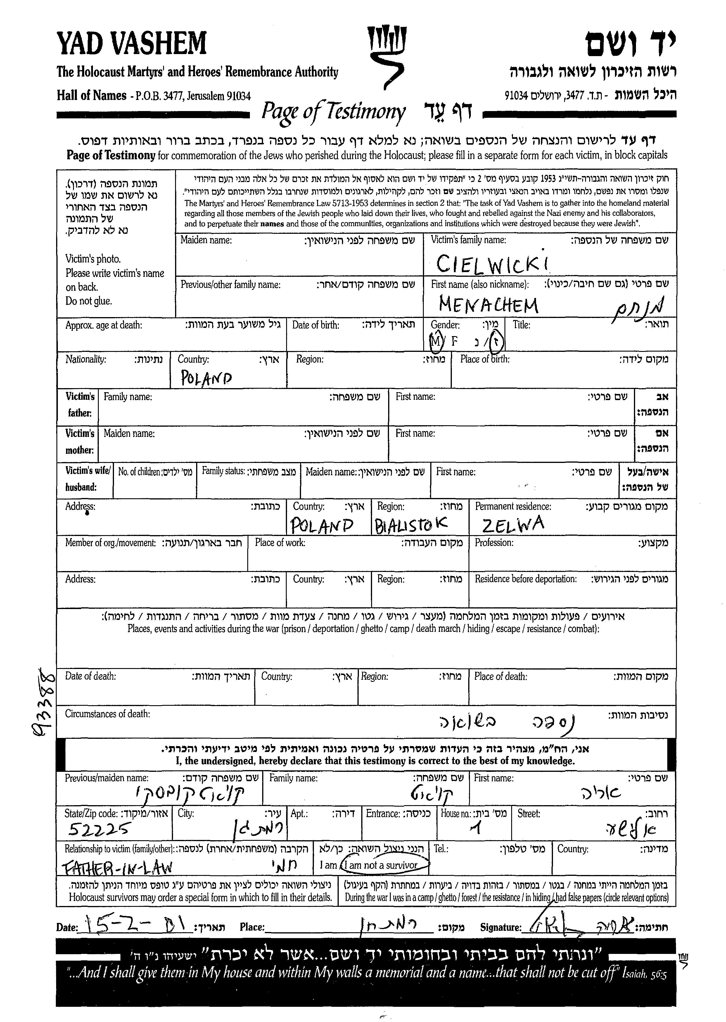 Juden wurden in der Schoah auf verschiedenste Weisen ermordet, unter anderem: Vergasen, Erschiessen, lebendig verbrannt werden, lebendig begraben werden, Tod durch Erschöpfung durch Zwangsarbeit, Epidemien, mangels jeder hygienischer Bedingung oder dem Fehlen medizinischer Versorgung. Manche Juden nahmen sich das Leben, um der Festnahme und weiterer Verfolgung zu entgehen oder ihr hoffnungsloses, nicht nachlassendes Leiden zu beenden.