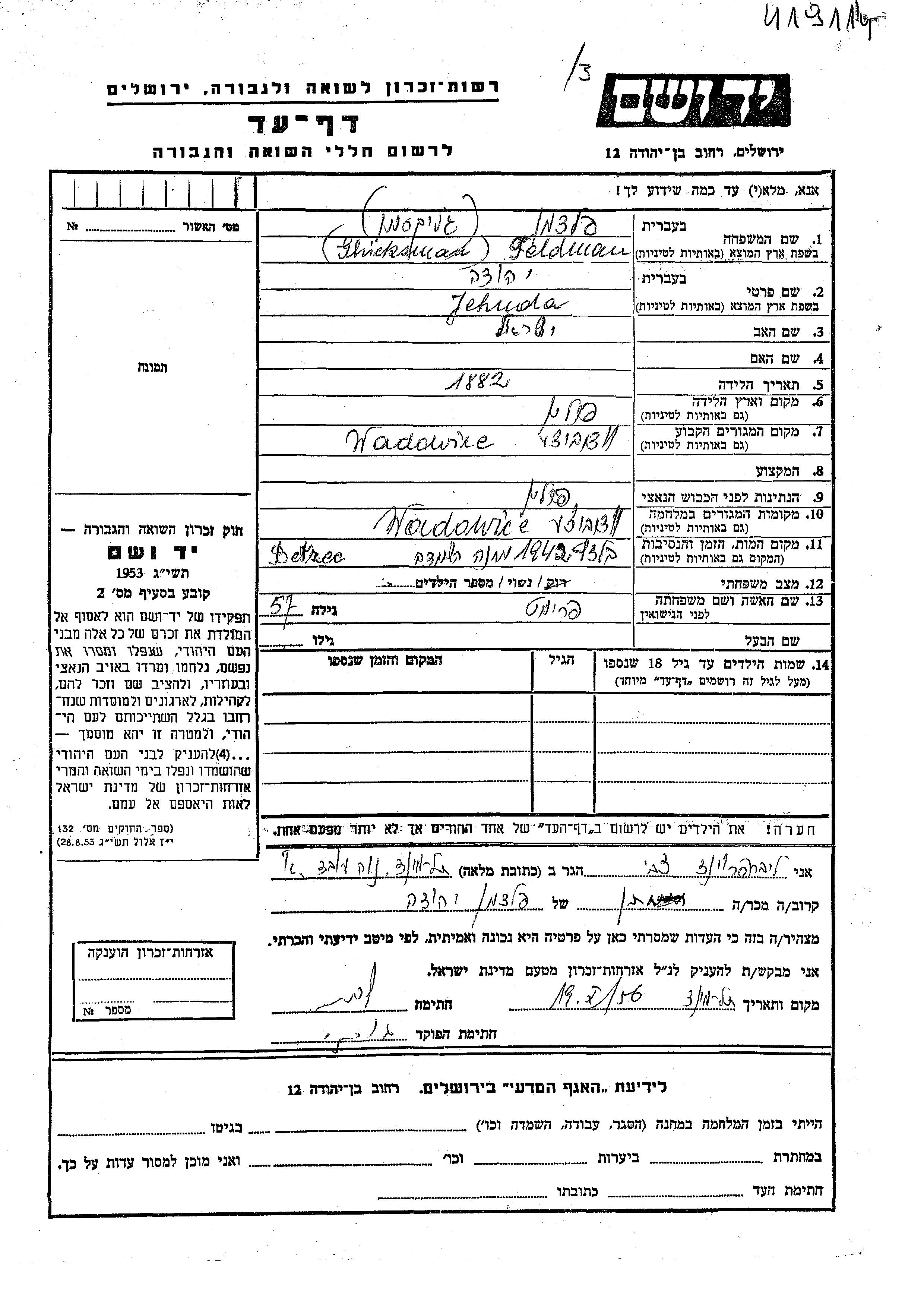 Jehuda wurde in der Schoah ermordet. Todesort: Belzec, Polen im Jahr 1942.